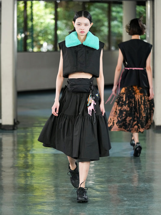 PUFF SLEEVE ZIP-UP JERSEY (BLACK)