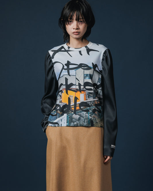 PRINT RIB L/S ONE-PIECE (COLLAGE)