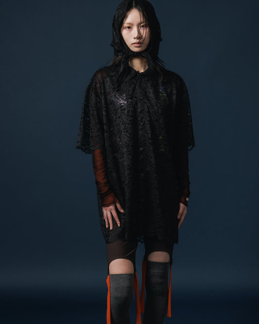 LACE HALF SLEEVE SHIRT & LACE SCARF (BLACK)