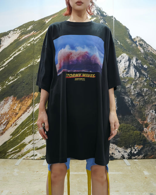 WAVE PRINT BIG T-SHIRT (BLACK)