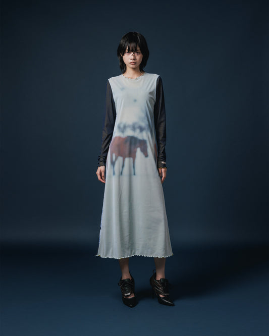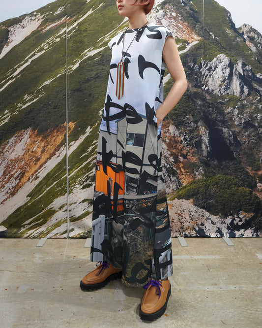 PRINT RIB NO SLEEVE ONE-PIECE (FOG)