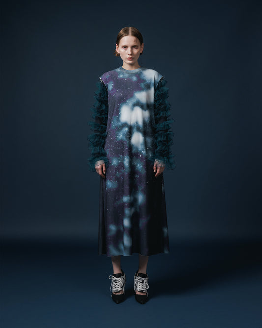 GATHER SHOULDER TIE-DYE ONE-PIECE (BLUE)