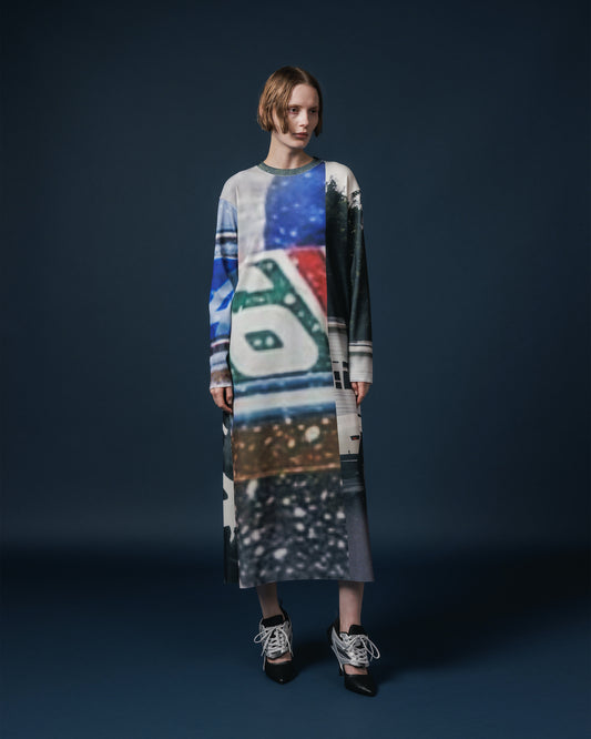 PRINT RIB L/S ONE-PIECE (COLLAGE)