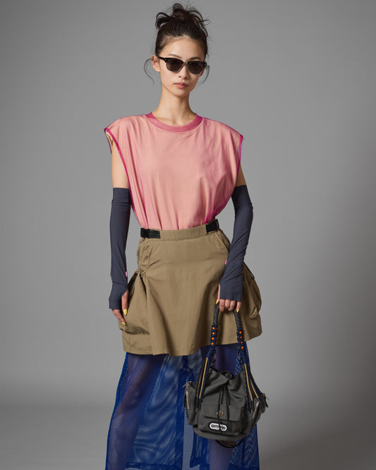 SHEER LAYER N/S T-SHIRT (BEIGE×PINK)