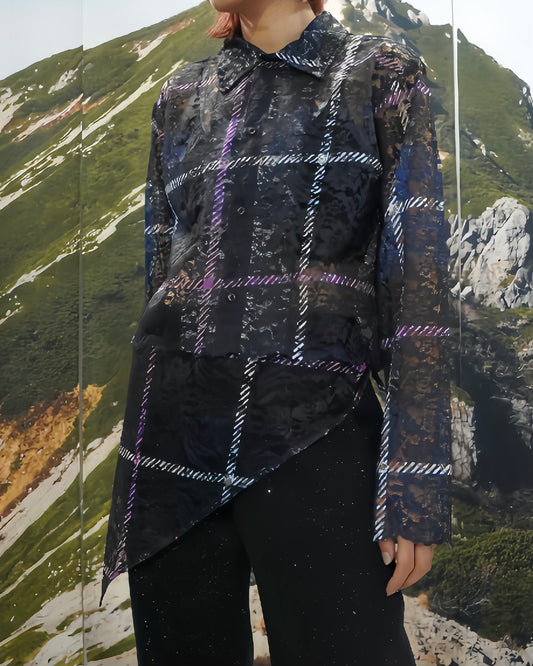 LACE LONG SLEEVE SHIRT & LACE SCARF (CHECK)