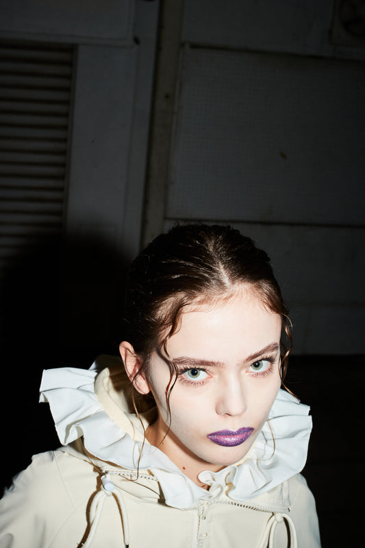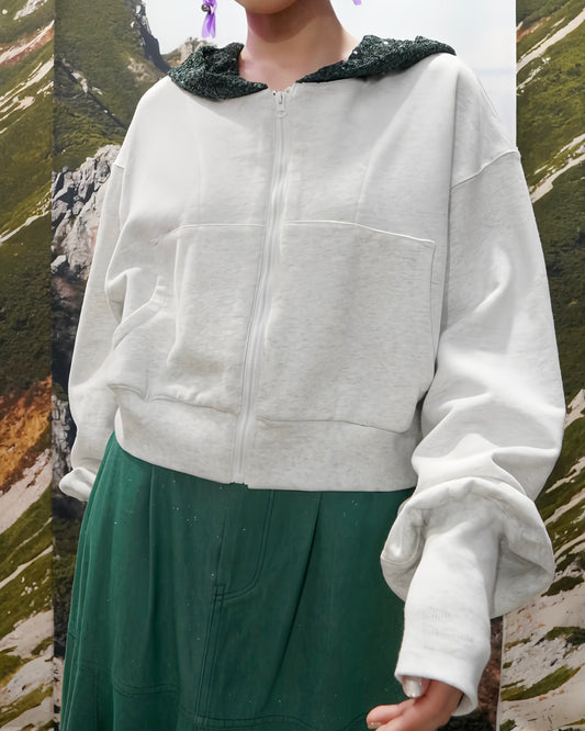 FRILL HEM SWEAT HOODIE (BEIGE x BLACK)