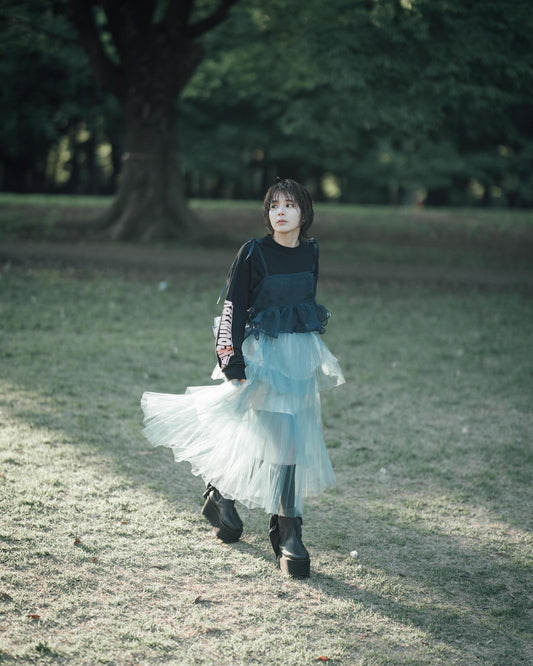 SHEER CAMISOLE L/S T-SHIRTS (BLACK x NAVY)