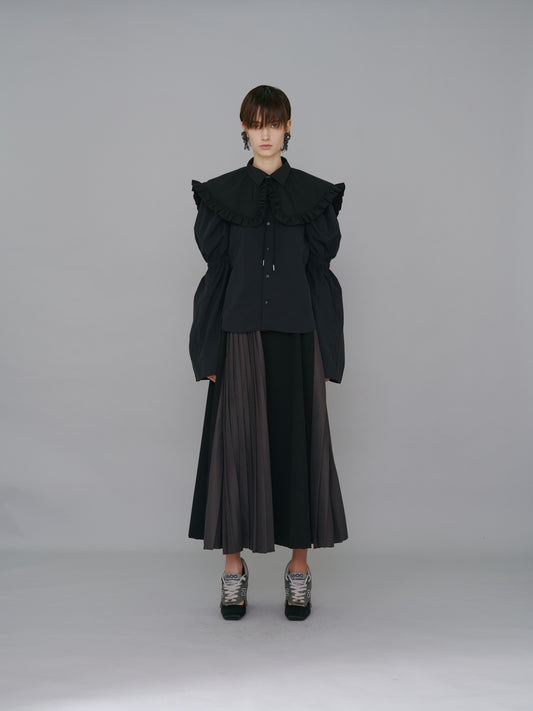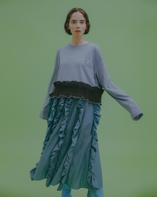 NON TOKYO / PLEATS FRILL LONG C/S (BLUE) / <NON TOKYO> Pleated frill long sleeve cut and sew (blue)