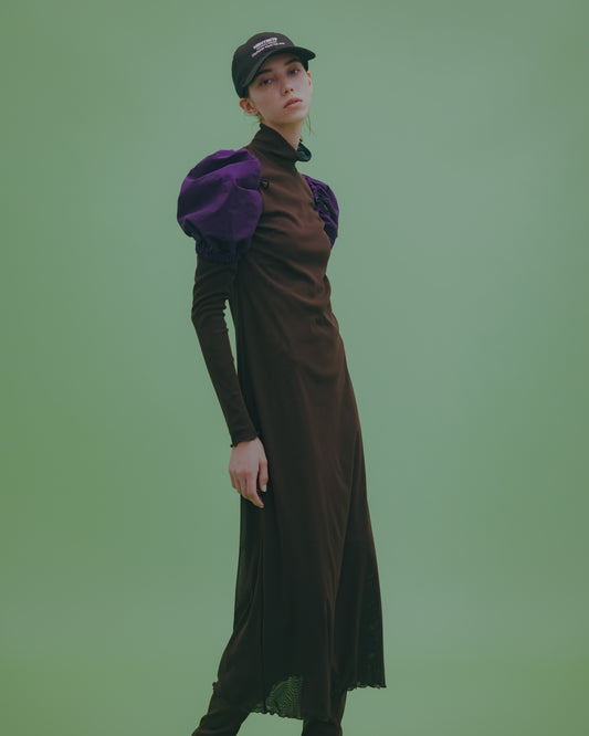 NON TOKYO / REVERSIBLE POWERNET HI NECK ONE-PIECE (BROWN×GREEN) / <NON TOKYO> Reversible power net high neck one-piece (brown×green)