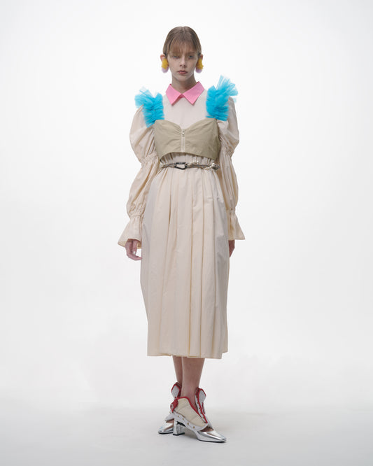 NON TOKYO / POWER SHOULDER WASHER SHIRT ONE-PIECE (IVORY) / <NON TOKYO> Power shoulder washer shirt one-piece (ivory)