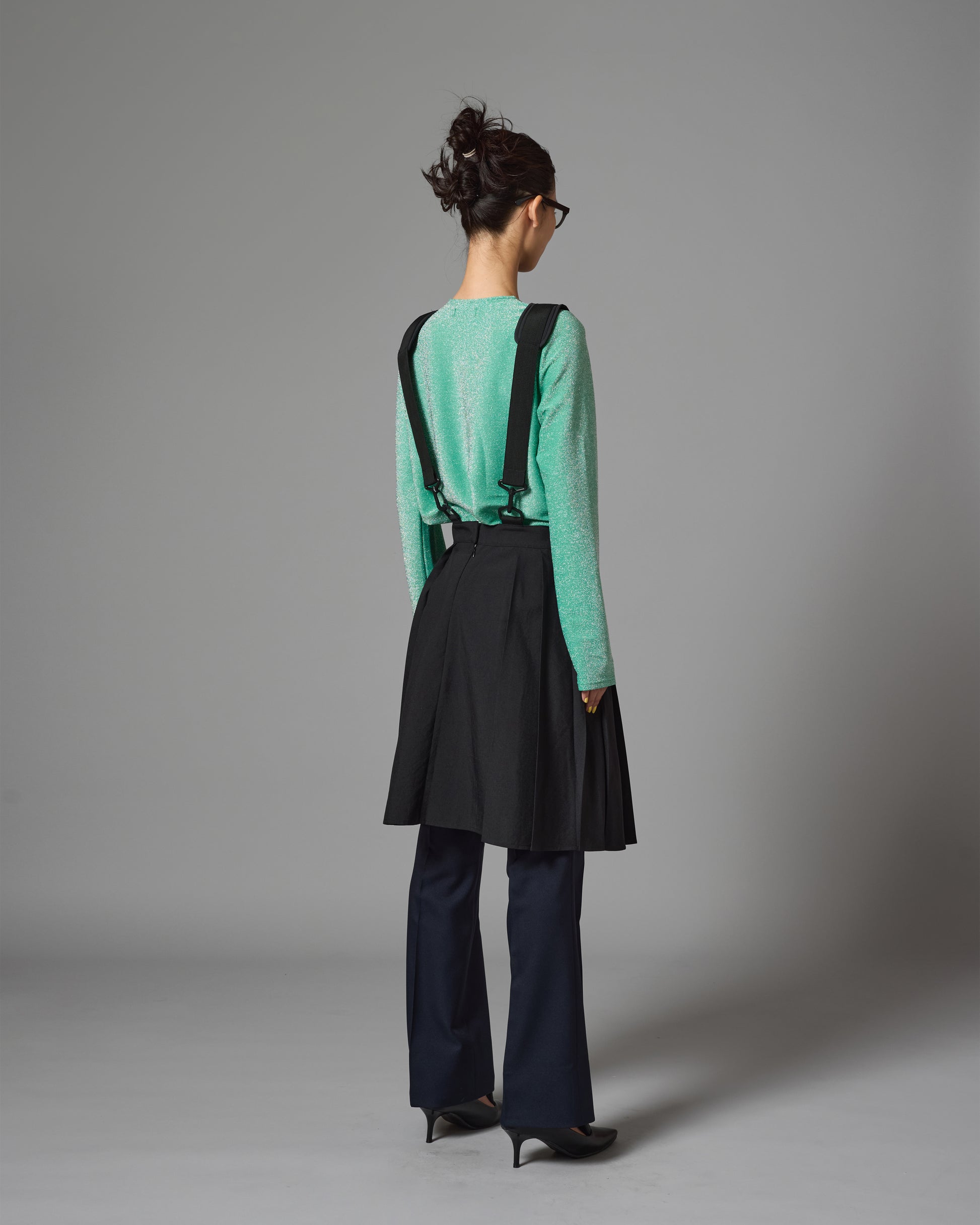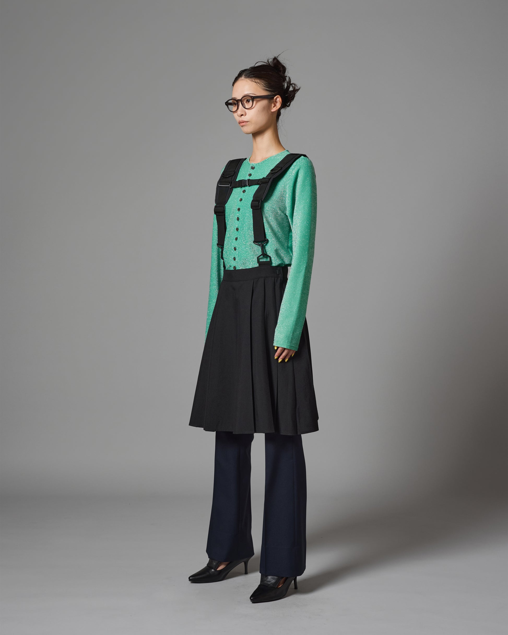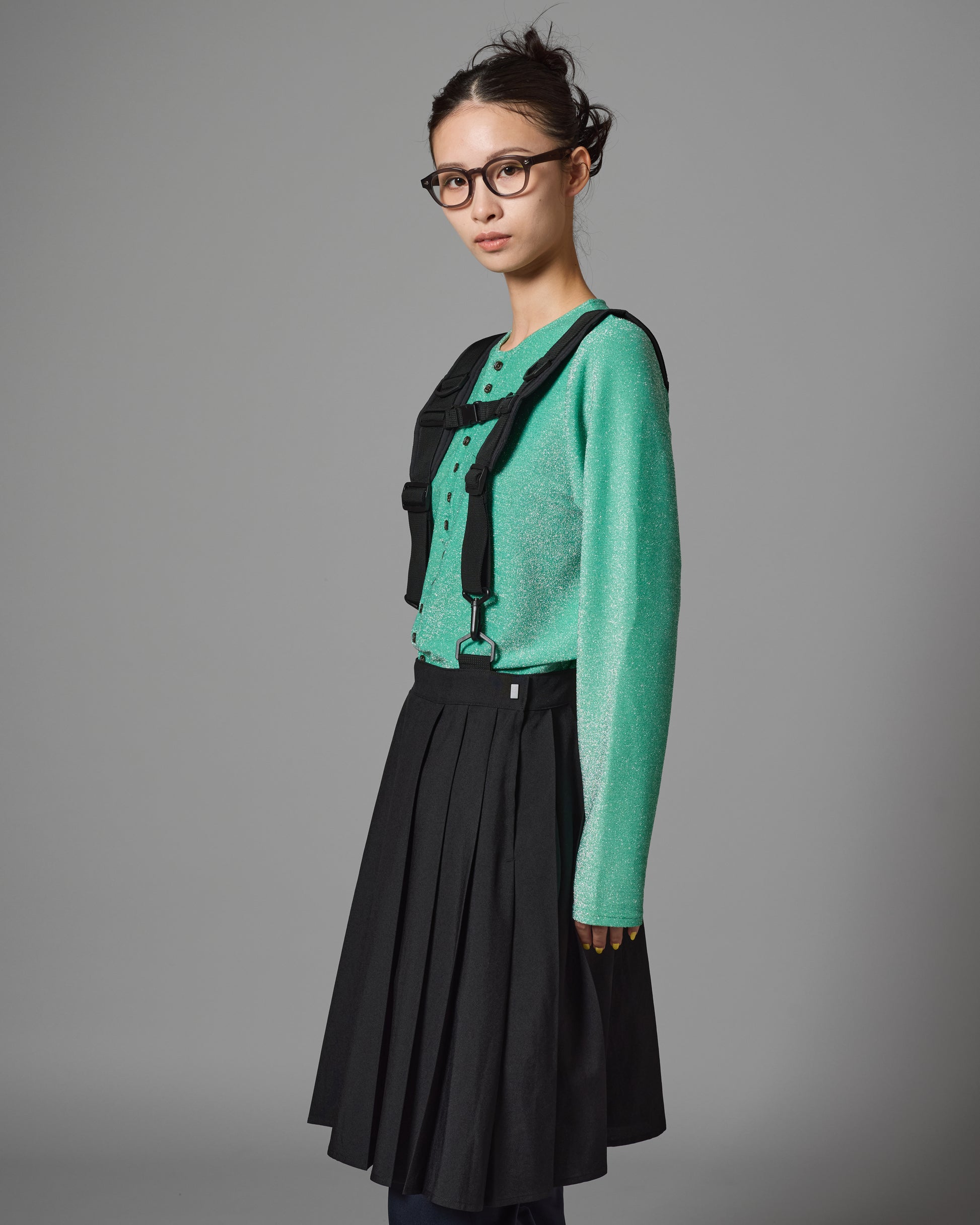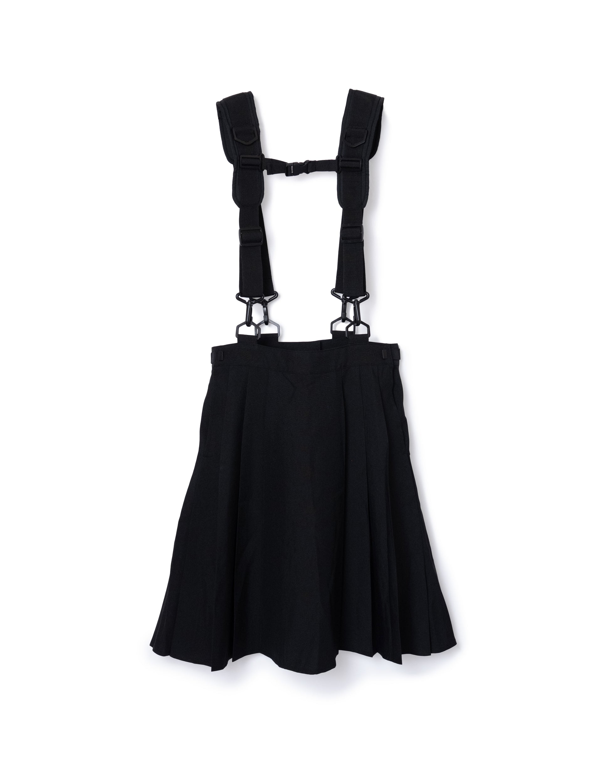 バックパックの様なディテールのショルダーがセットになったプリーツスカート。