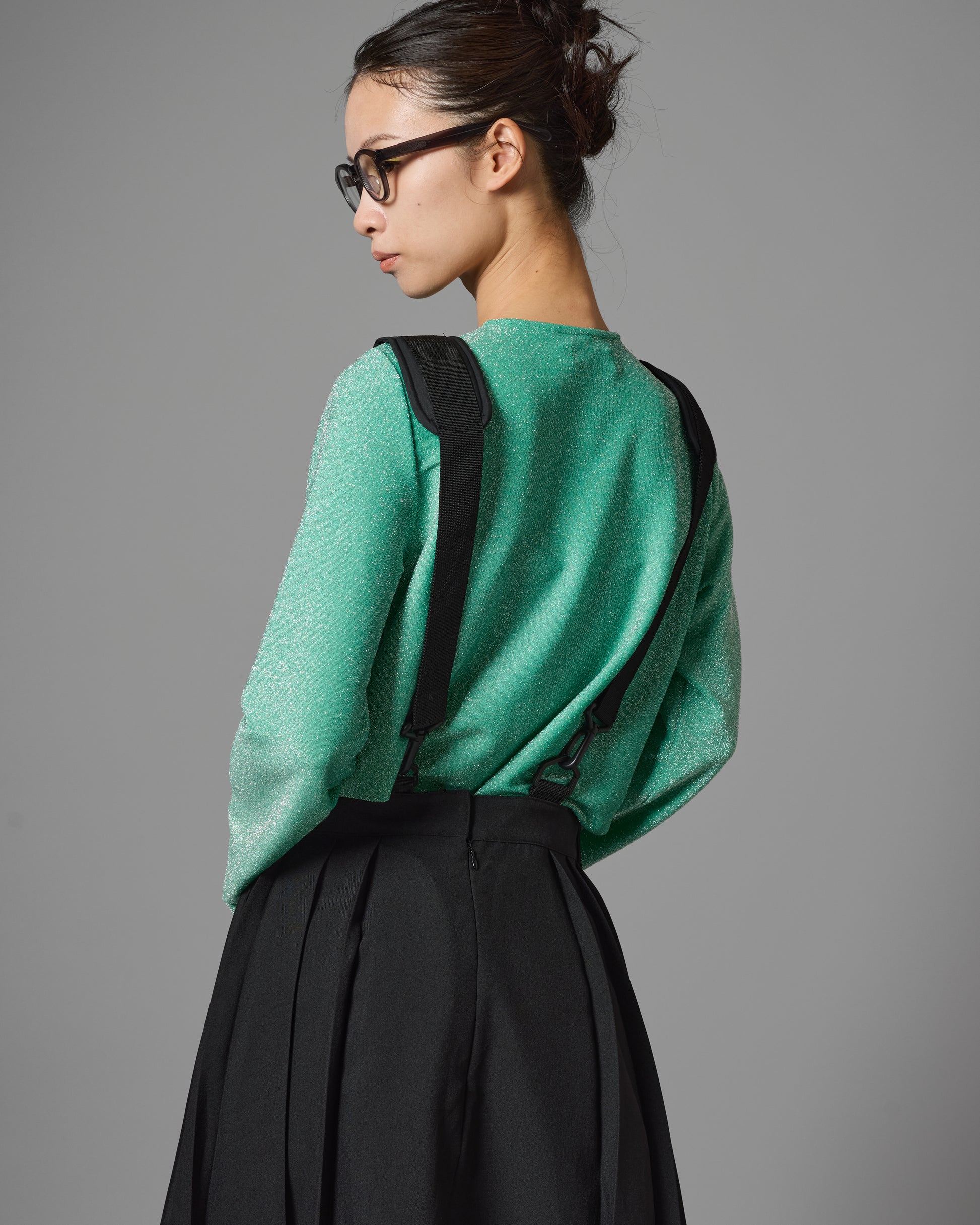 ショルダーをおろしたり、取り外してスカート単体で着用するなど、様々な着こなしが楽しめます。