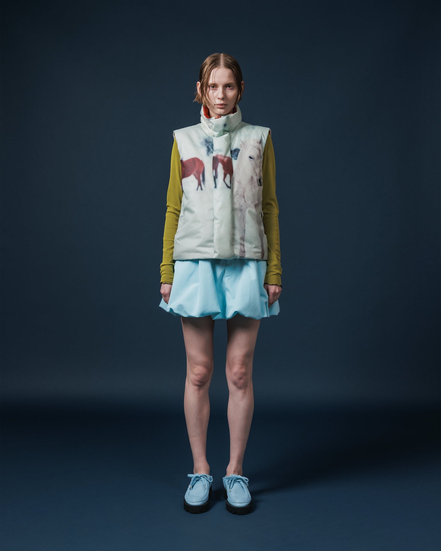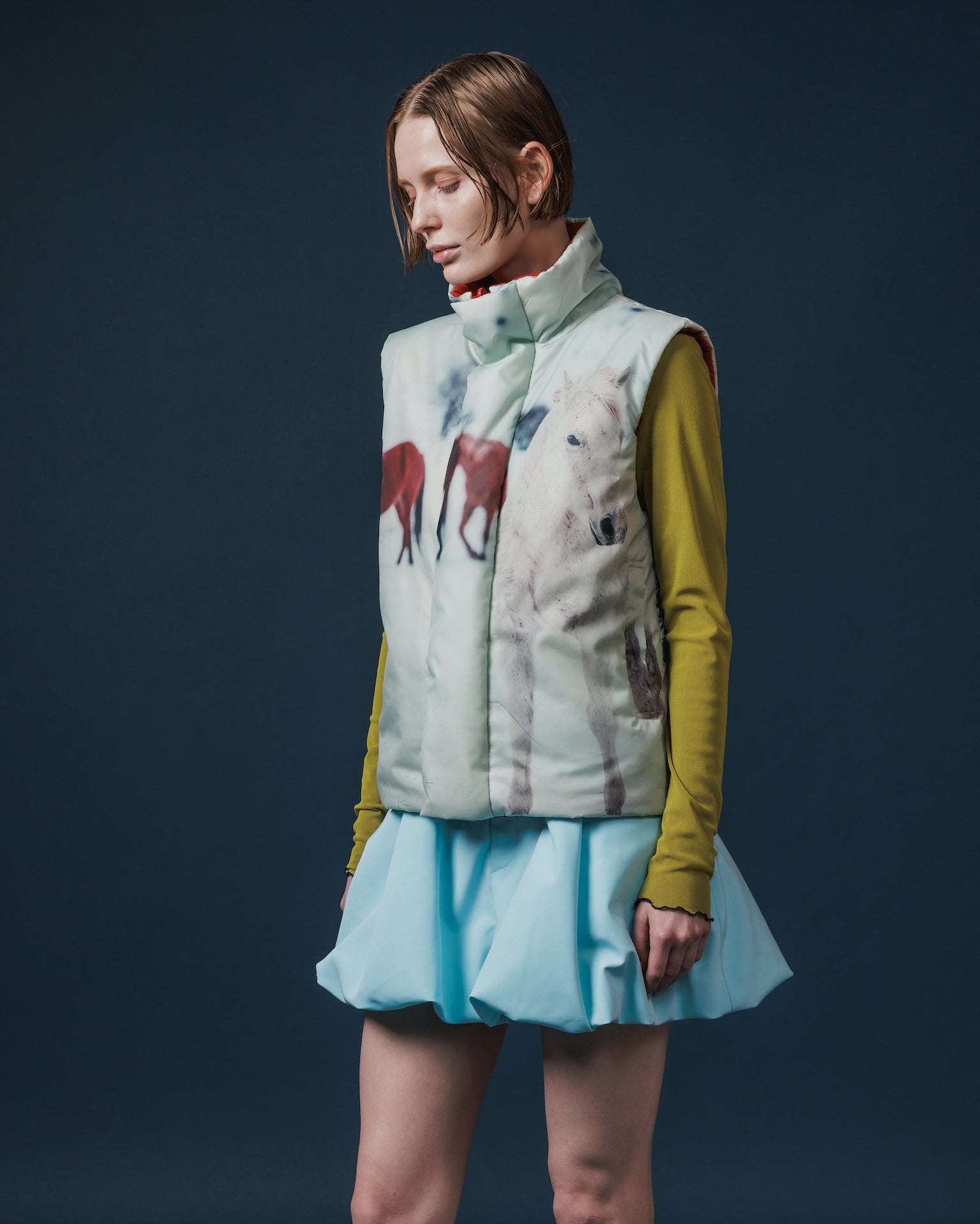 バルーンシルエットのミニスカート。