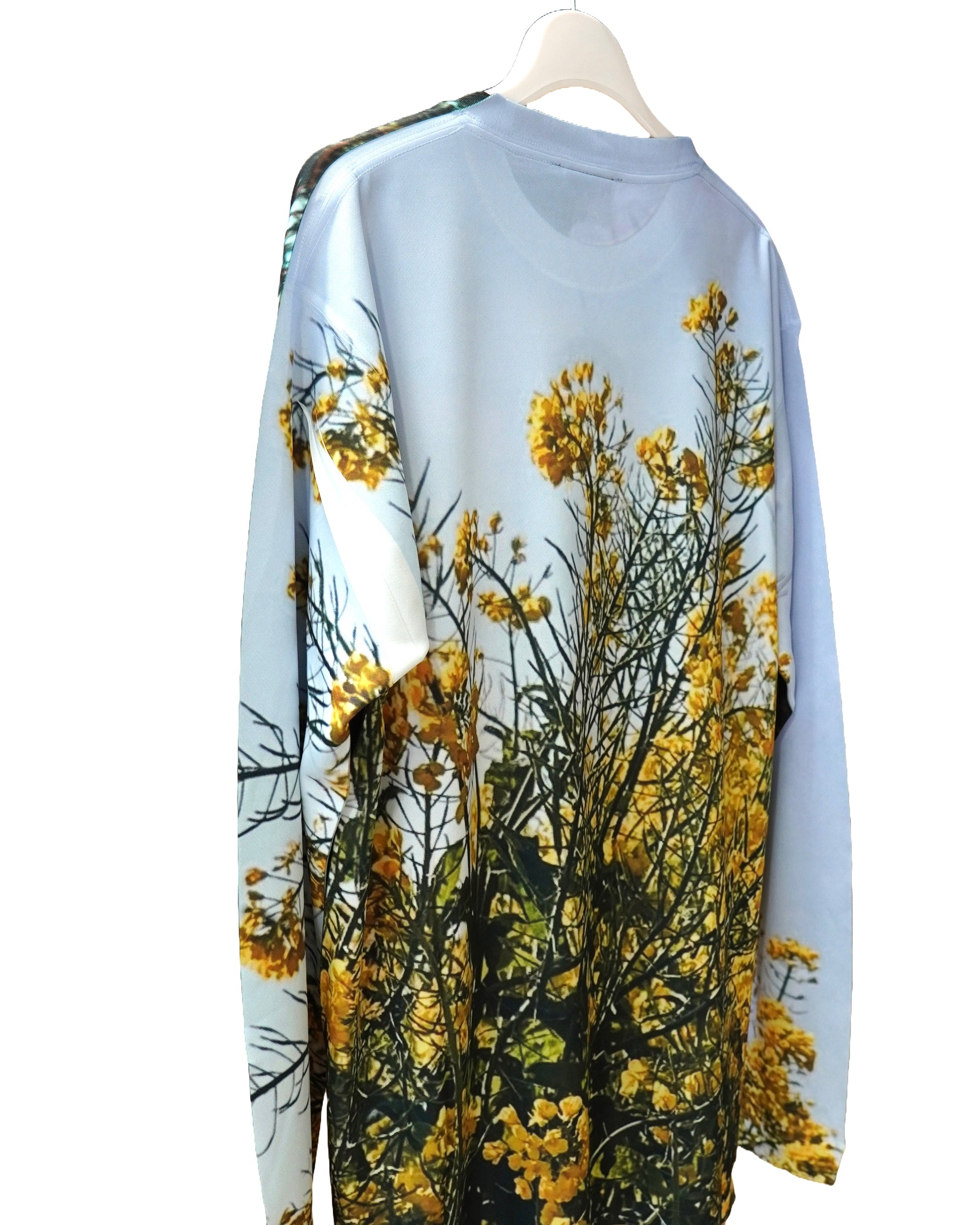ダイレクトに転写プリントが施された長袖Tシャツ。
