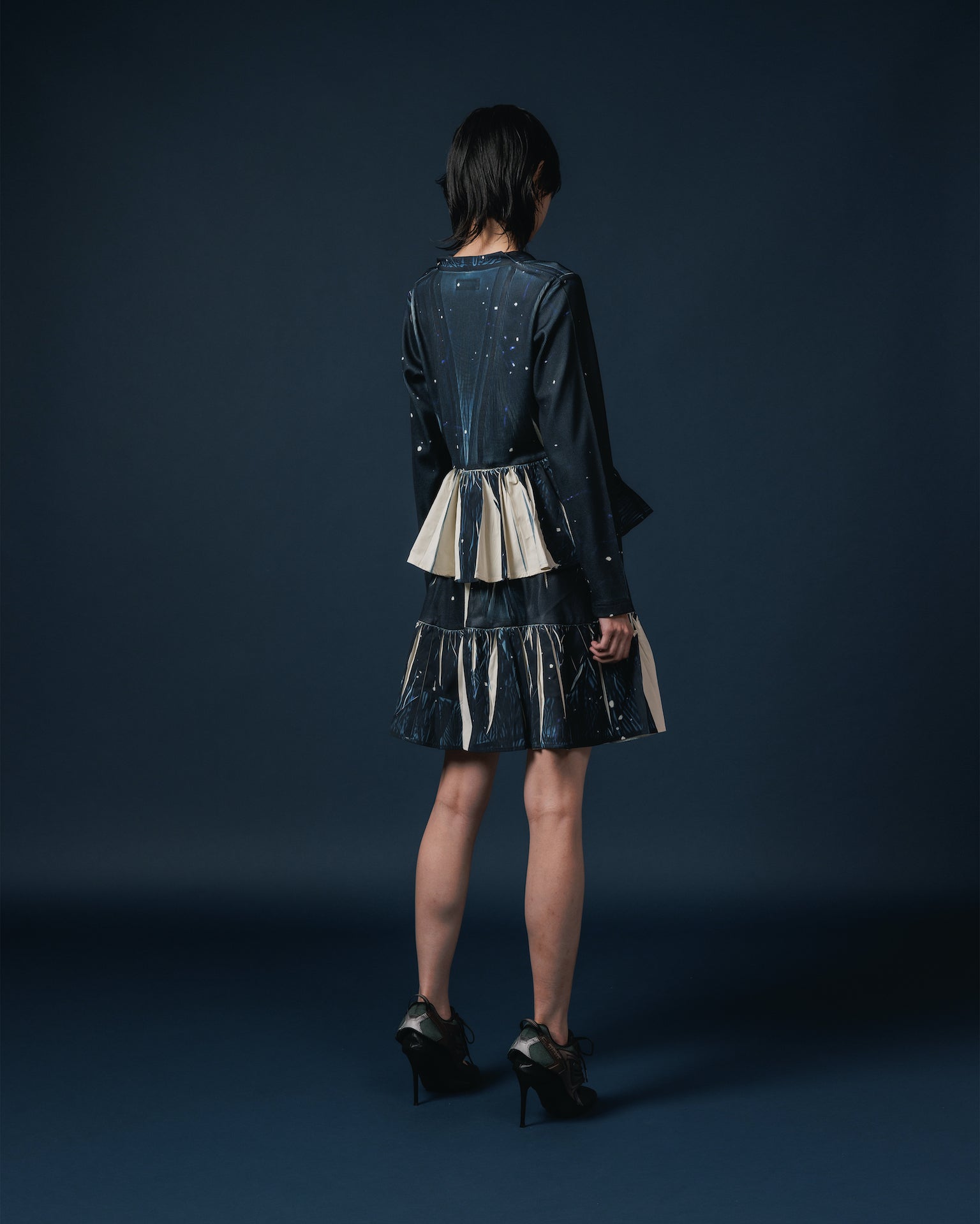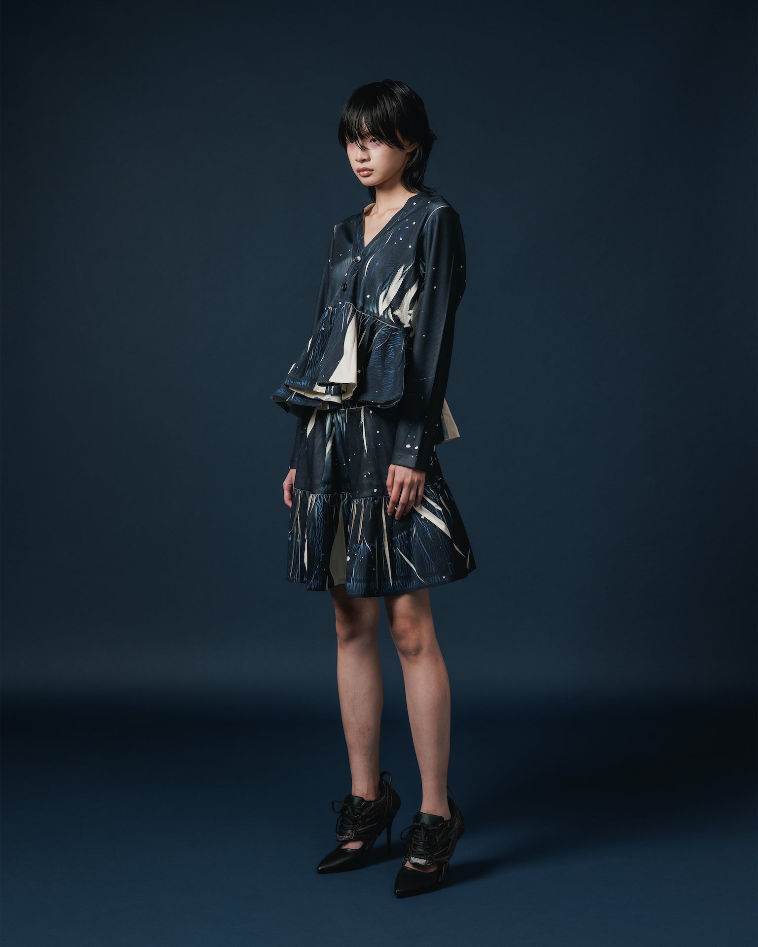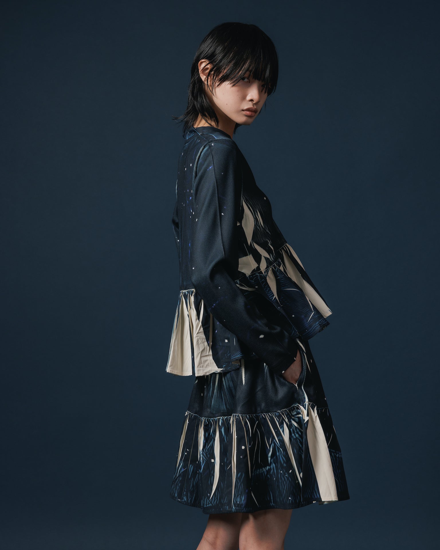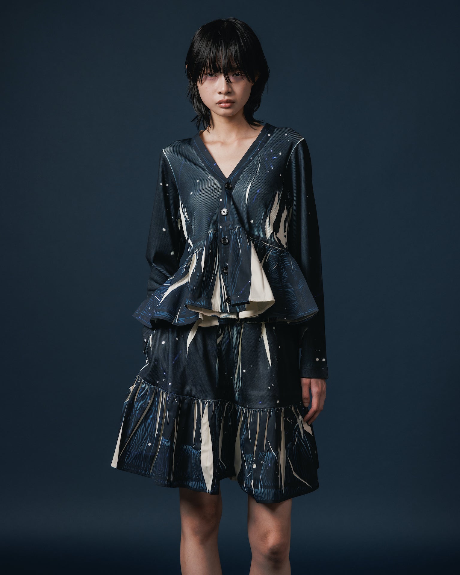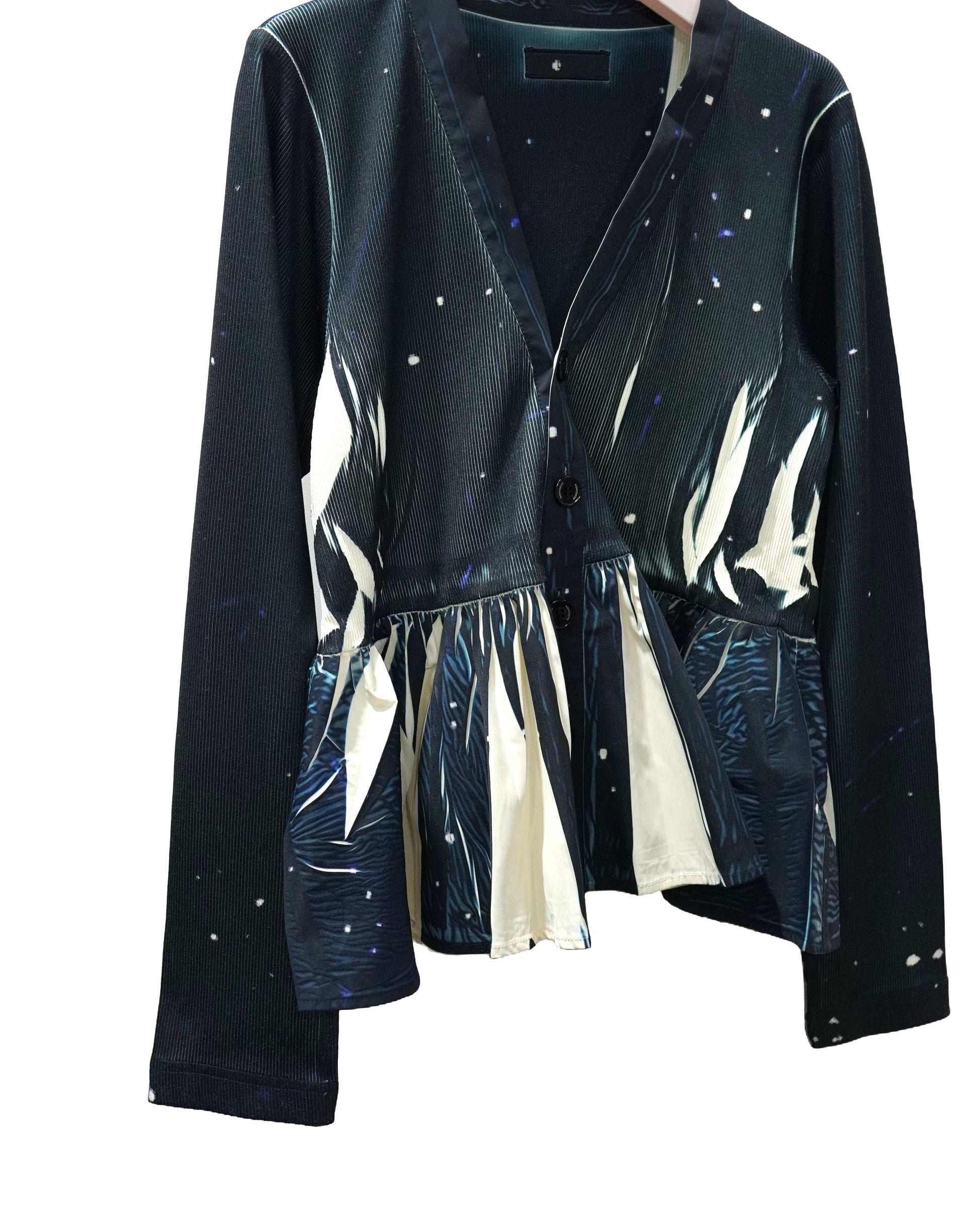 DIRECT PRINT RIB GATHER CARDIGAN (STARRY SKY)