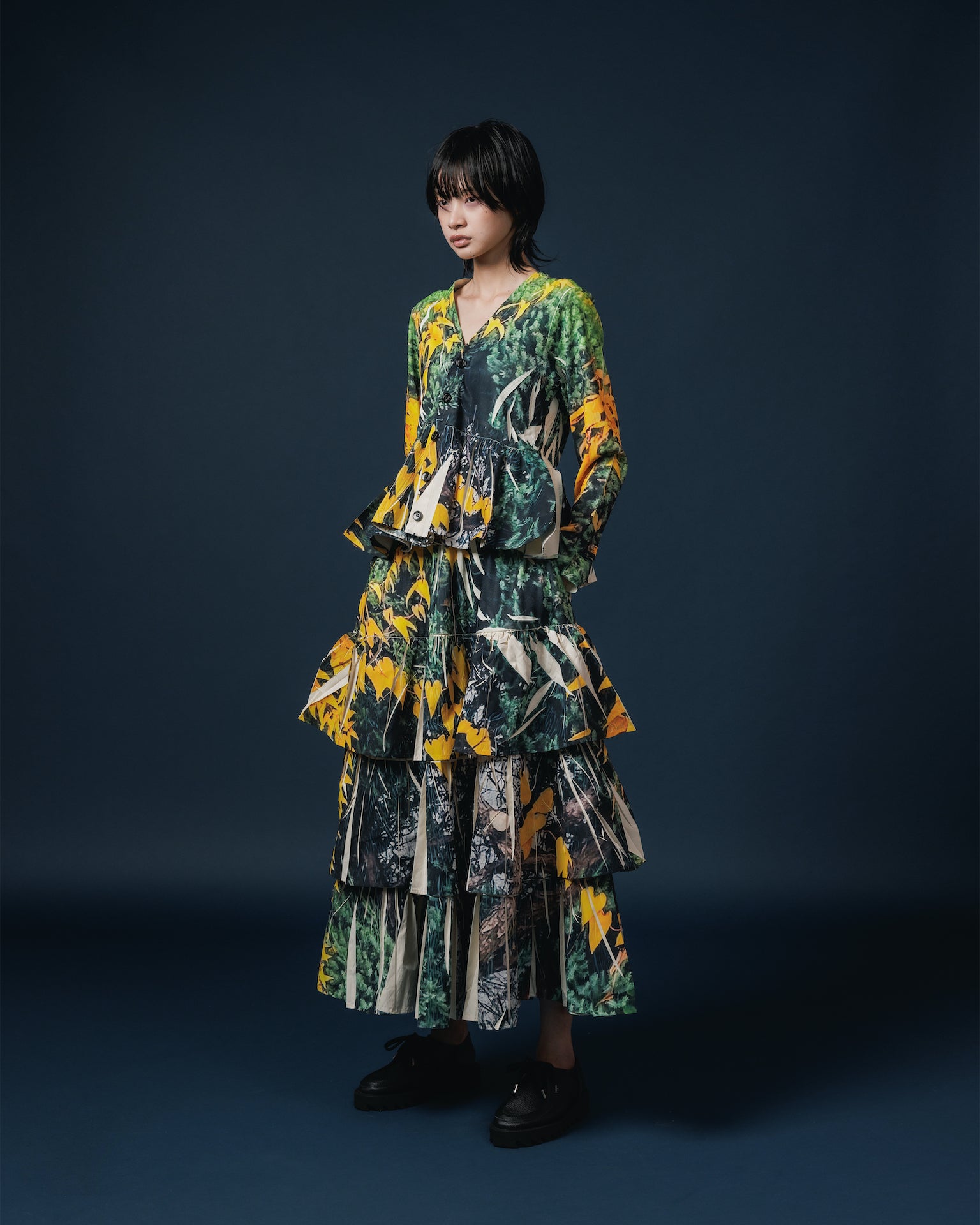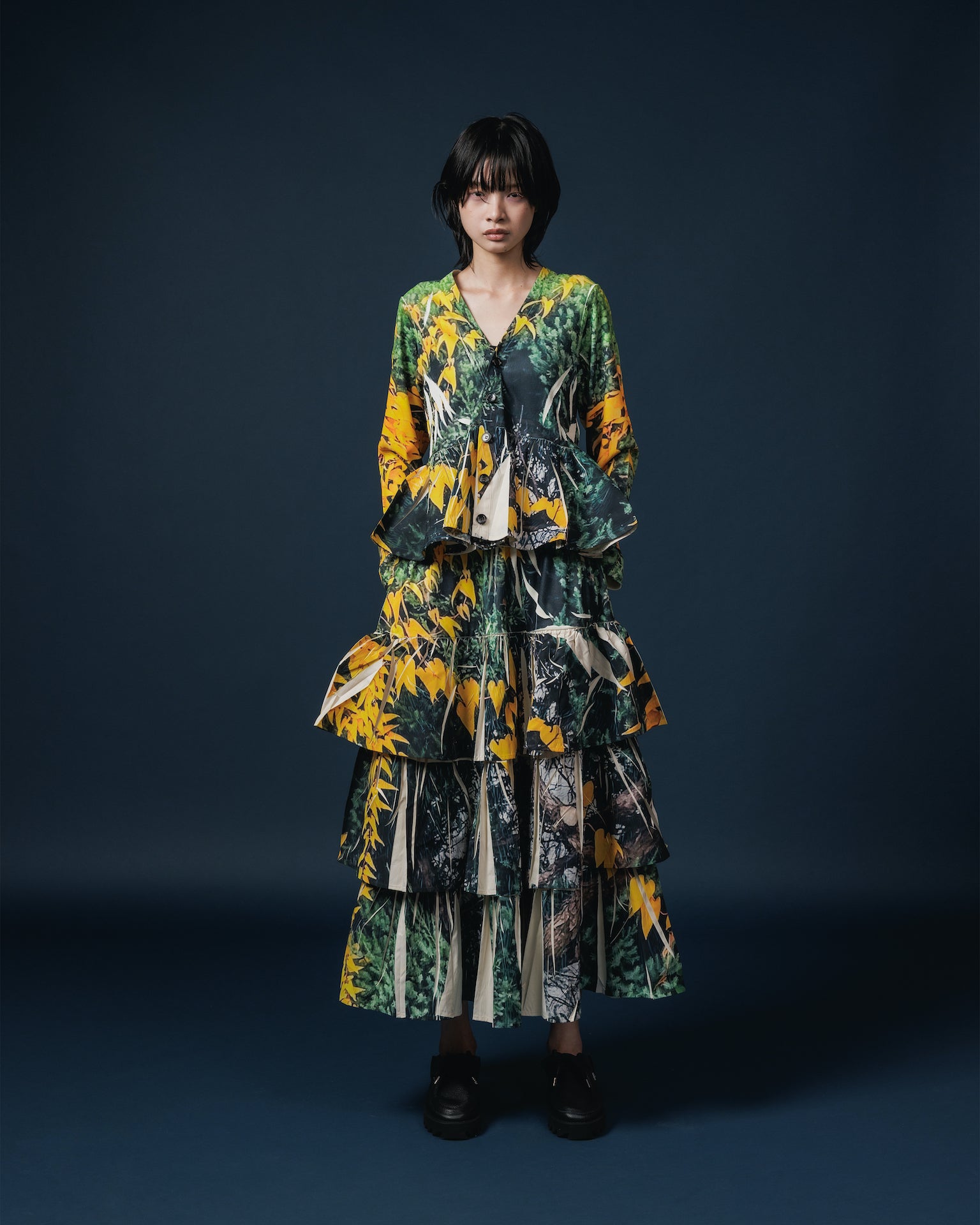 切替えでギャザーを寄せているので、フレアなシルエットが特徴です。