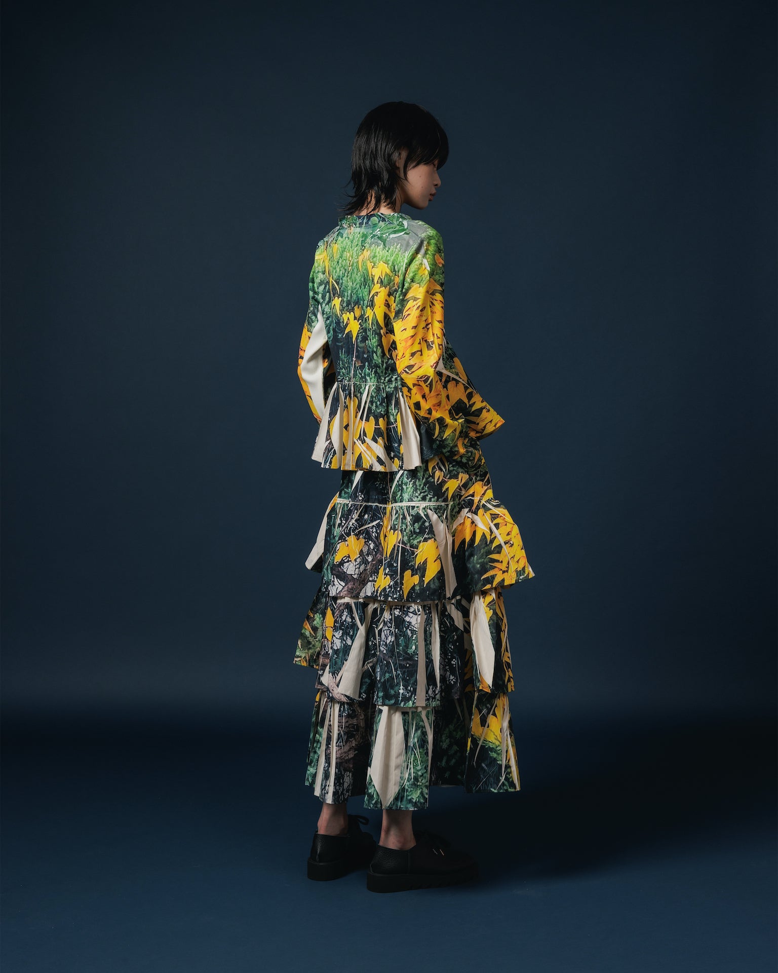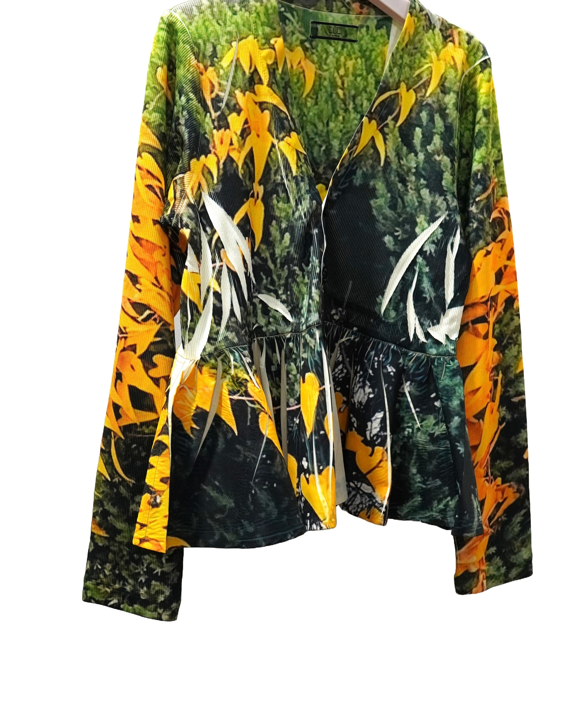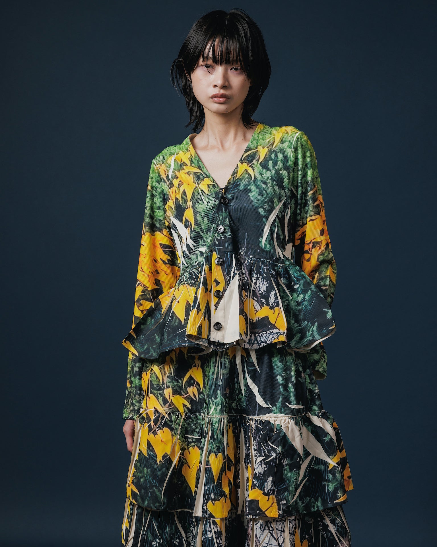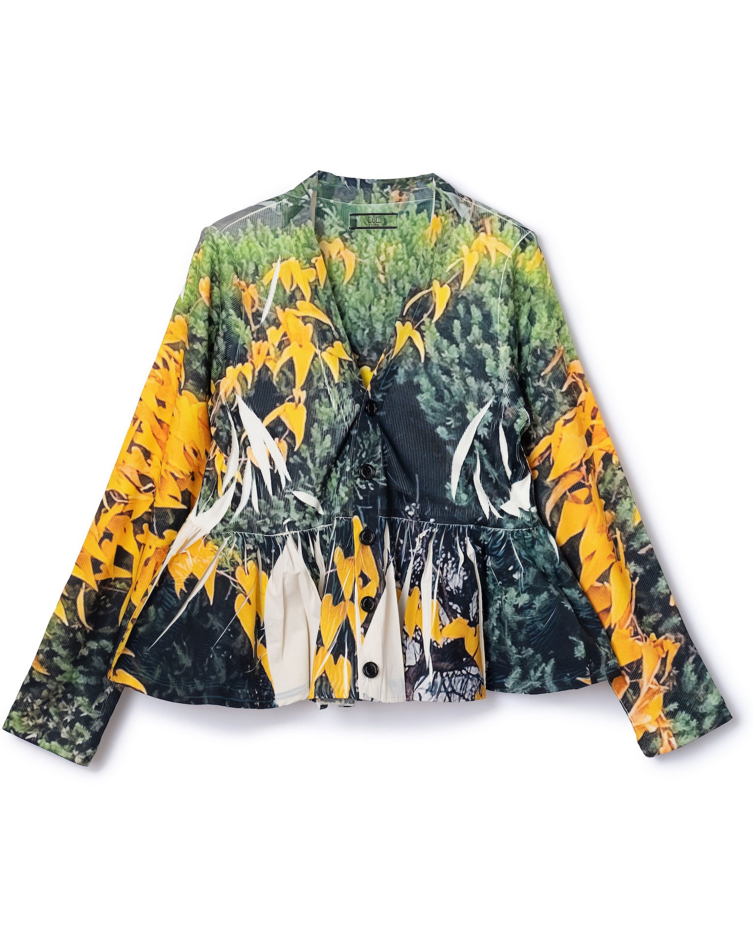 DIRECT PRINT RIB GATHER CARDIGAN (YELLOW WOOD)