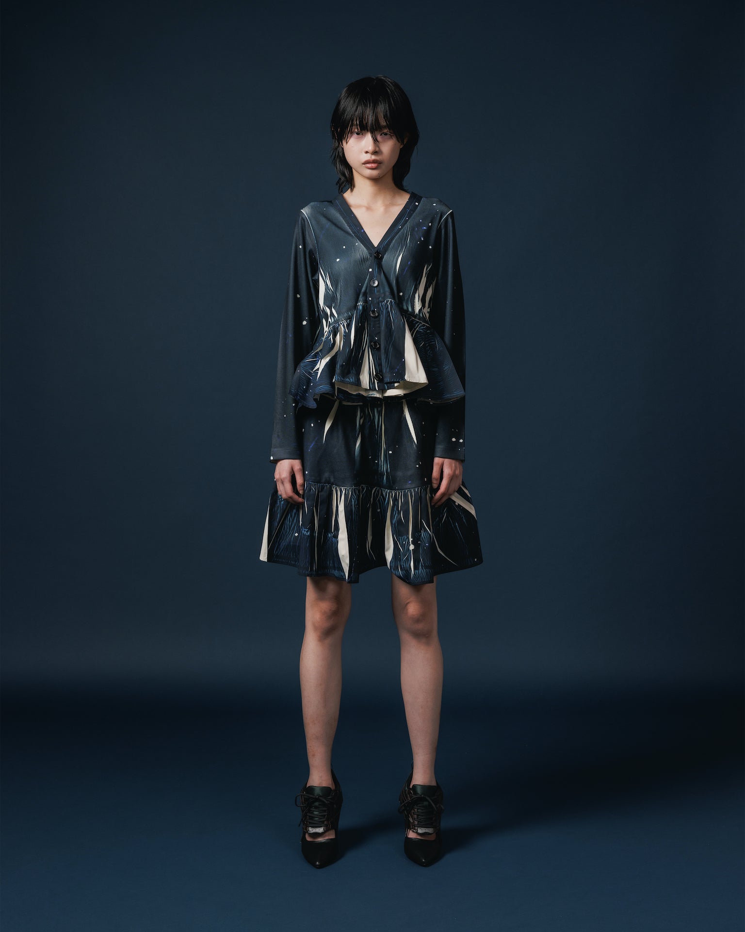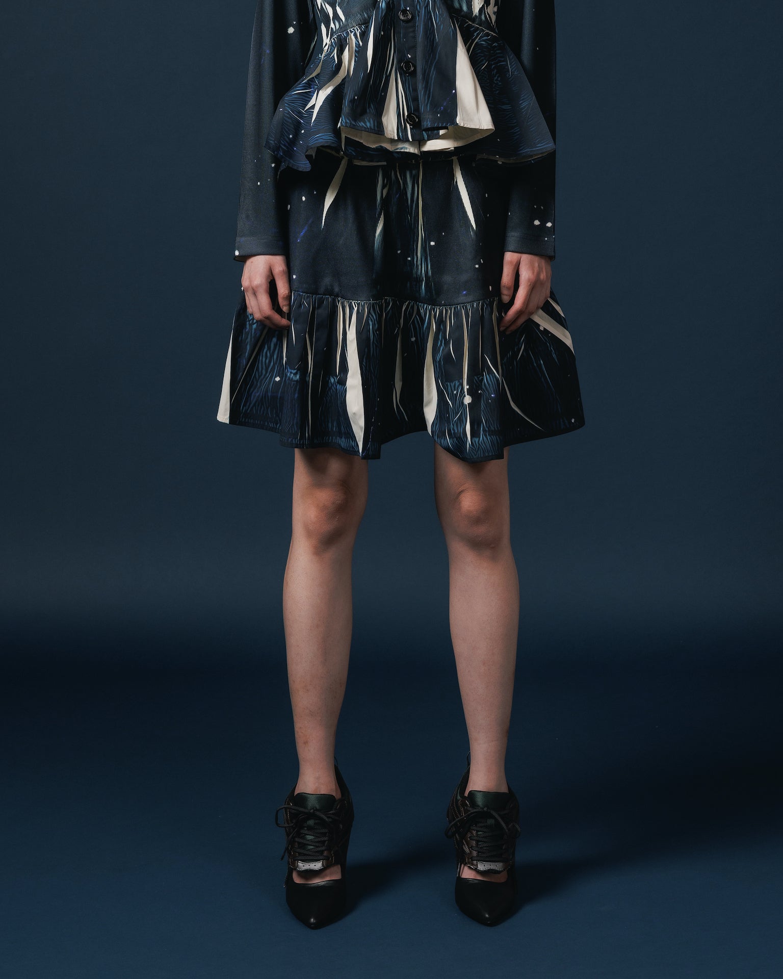 DIRECT PRINT RIB GATHER MINI SKIRT (STARRY SKY)