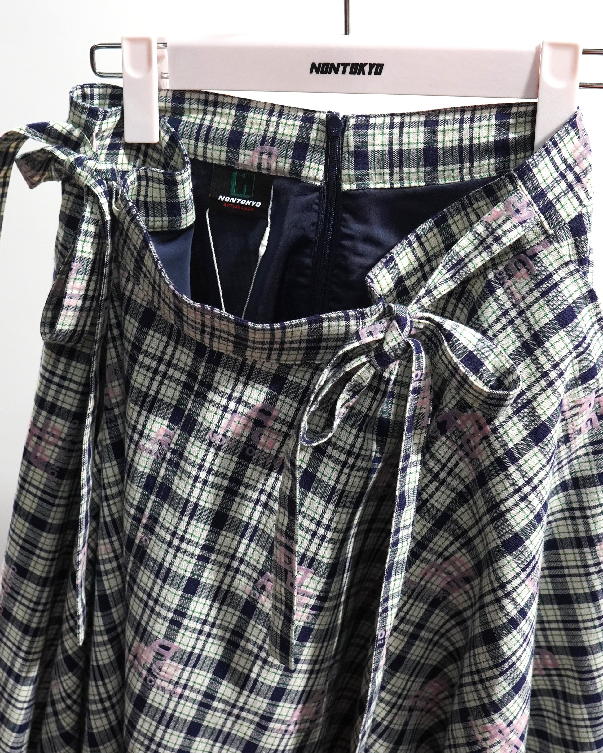 オリジナルのフロッキープリントが入ったリボンスカート。
