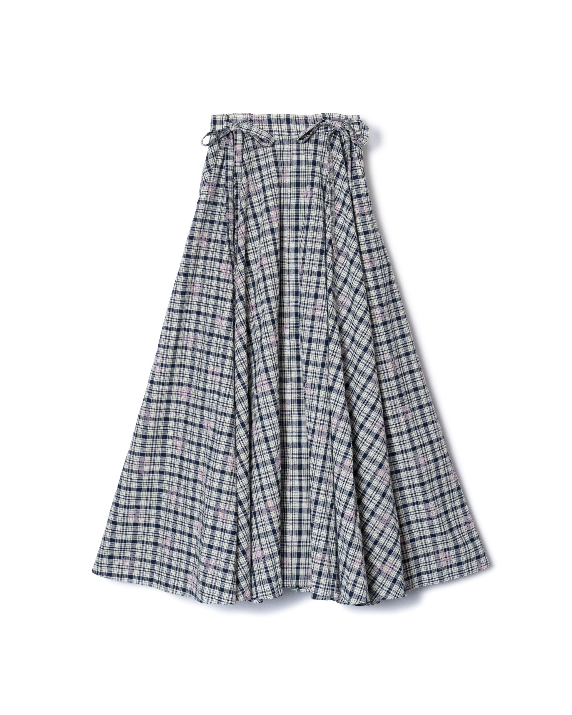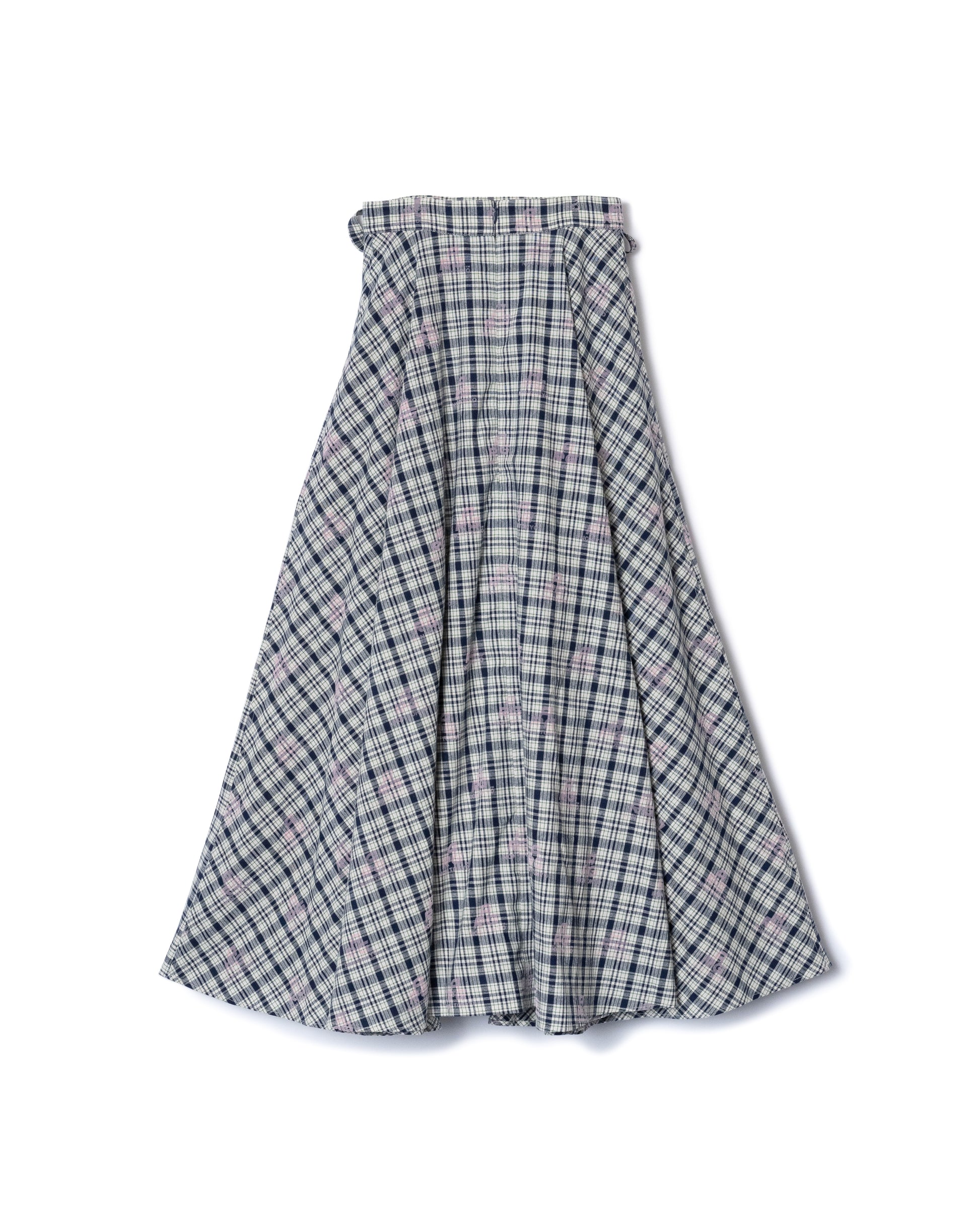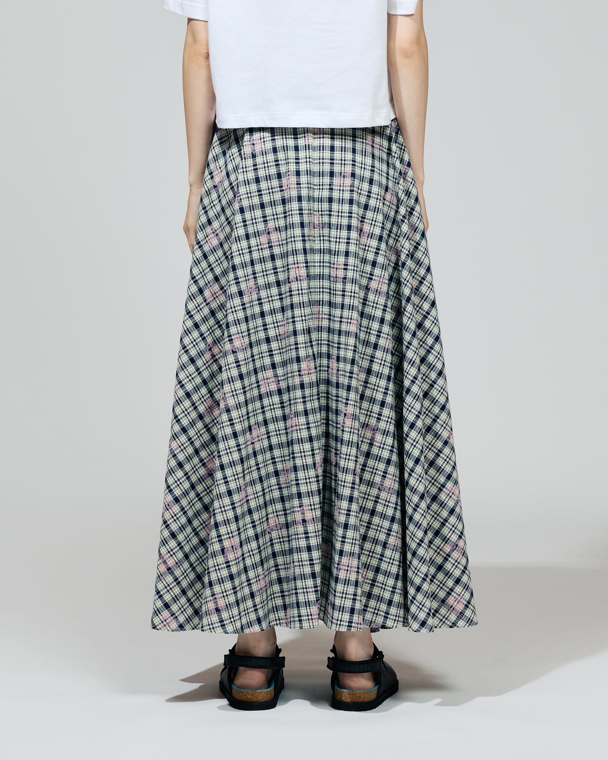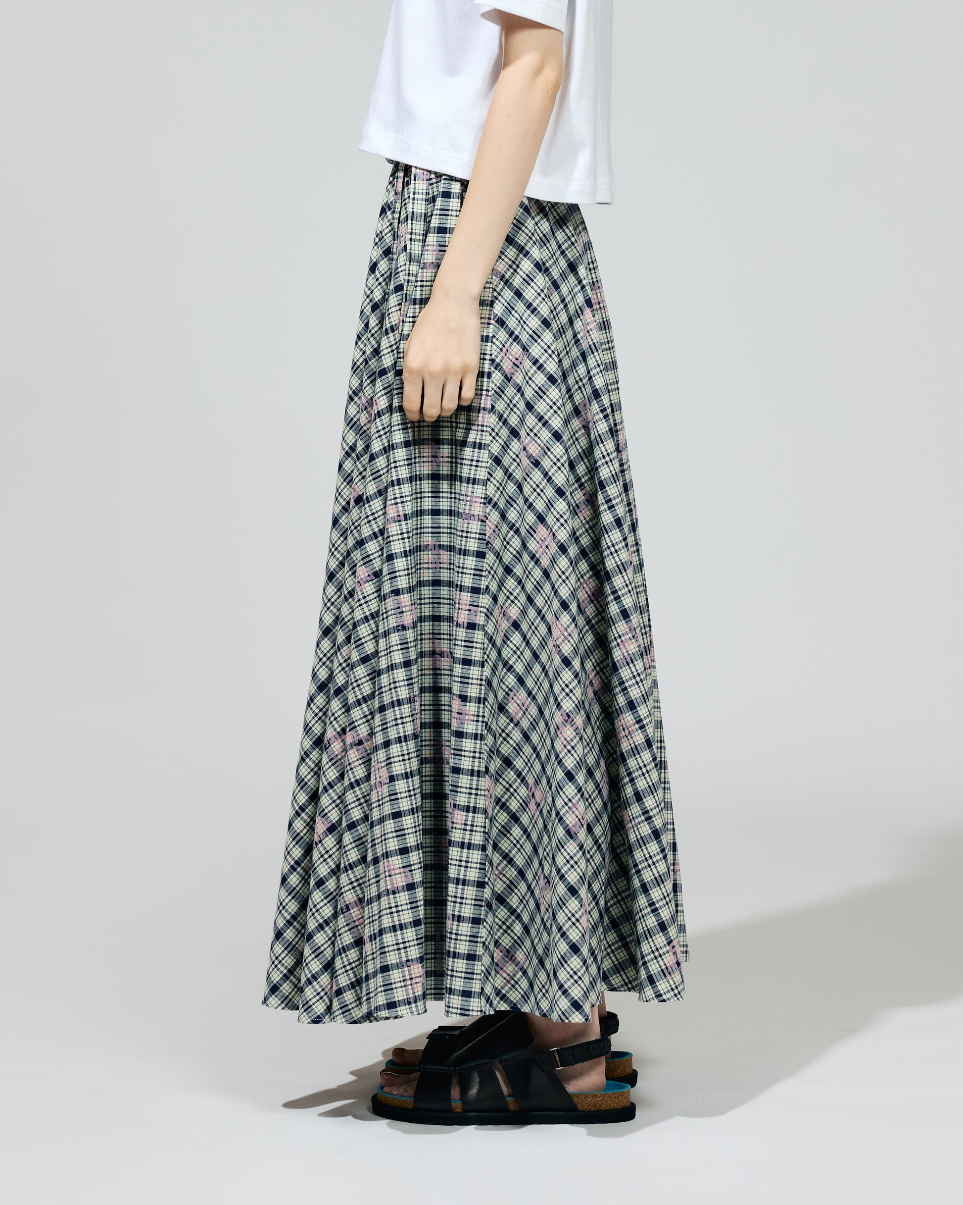 FLOCKED PRINT LONG SKIRT (CHECK)