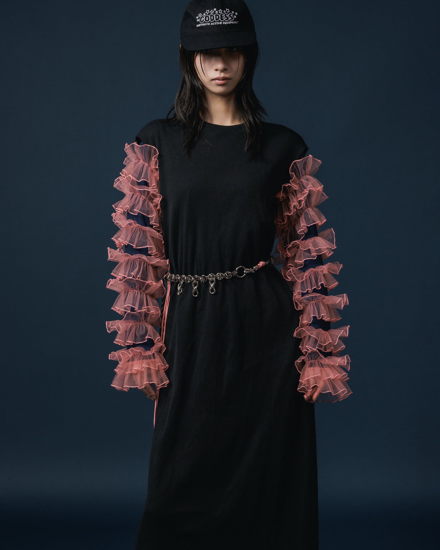 FRILL SLEEVE C/S (NAVY x PINK)