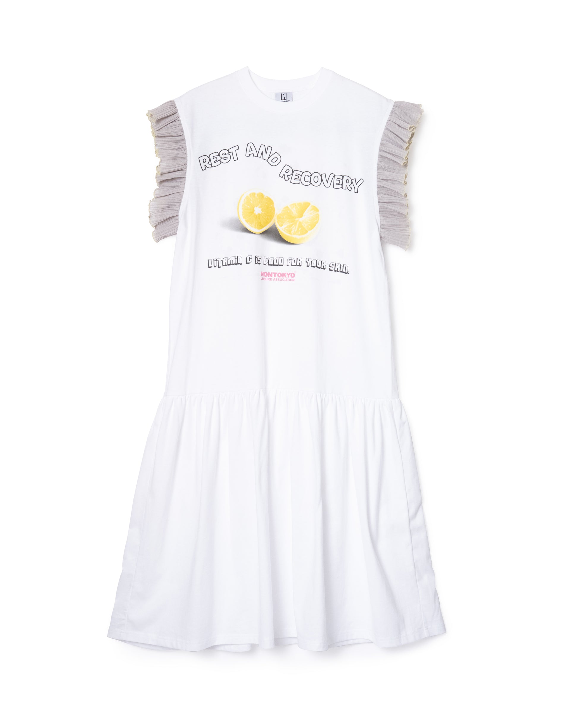 ノースリーブに付いたフリルは二の腕をカバーしてくれます。
