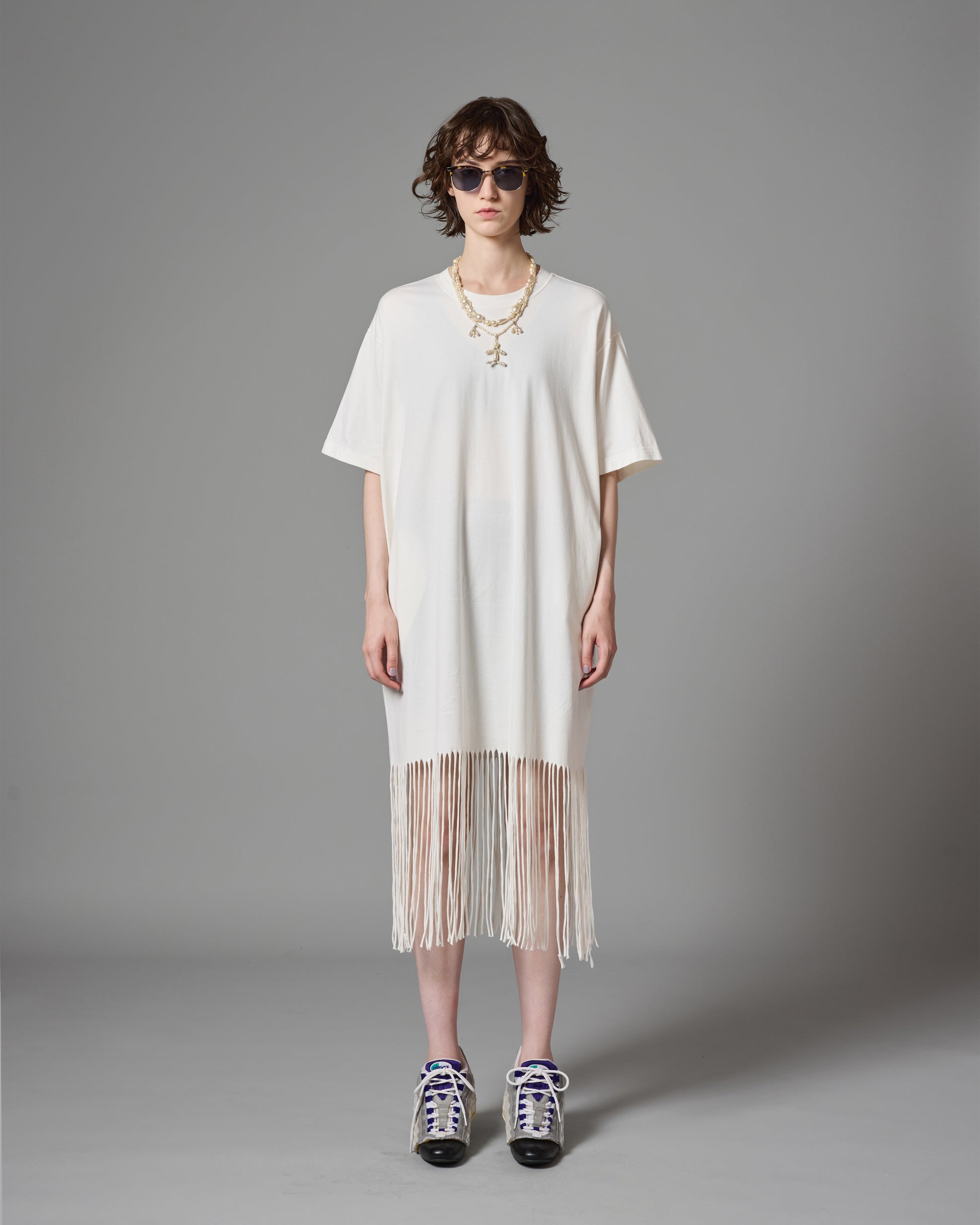 FRINGE T-SHIRT ONE-PIECE(WHITE)