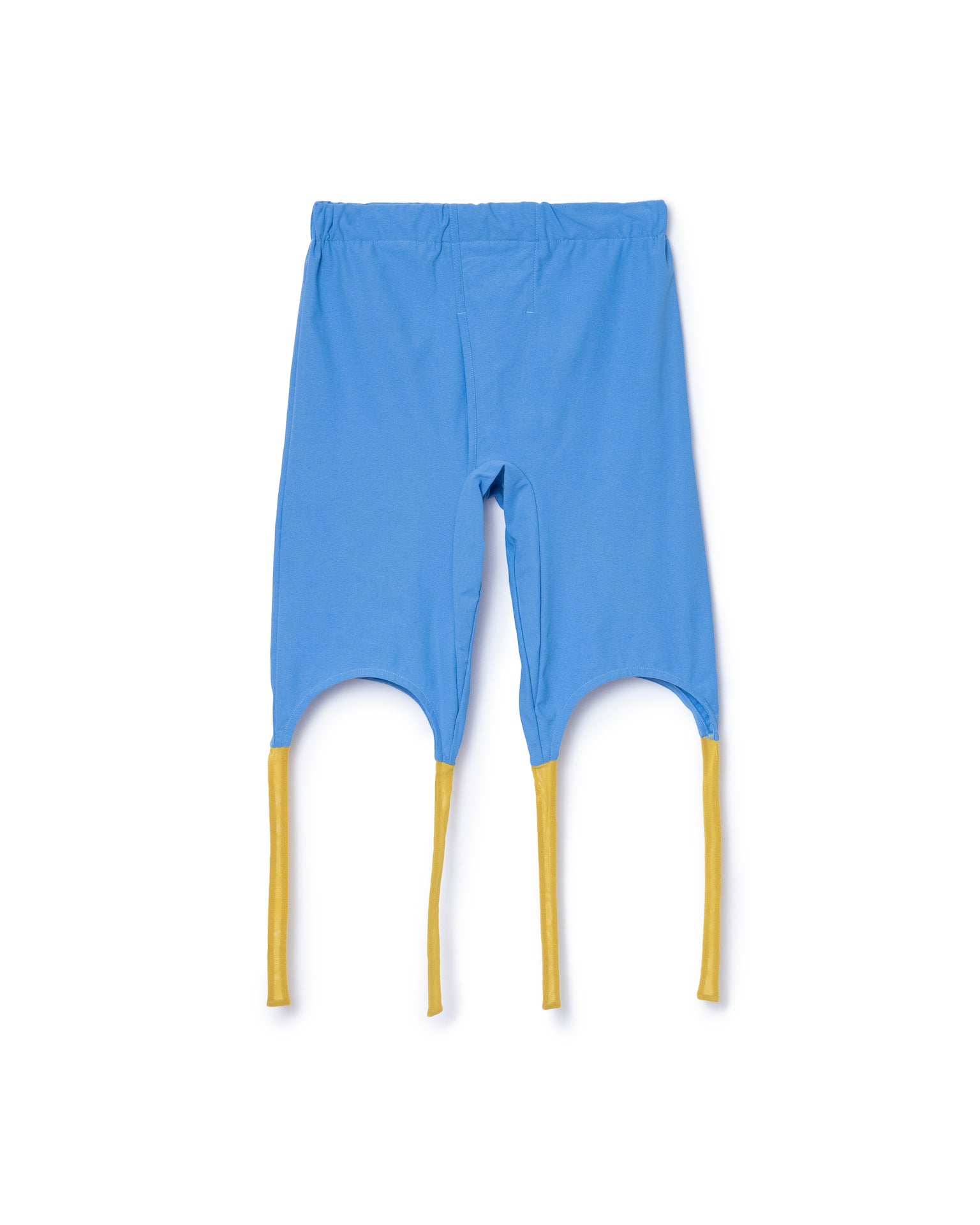 股引の様なデザインで、裾に付いた切り替えのテープデザインの配色がポイントです。