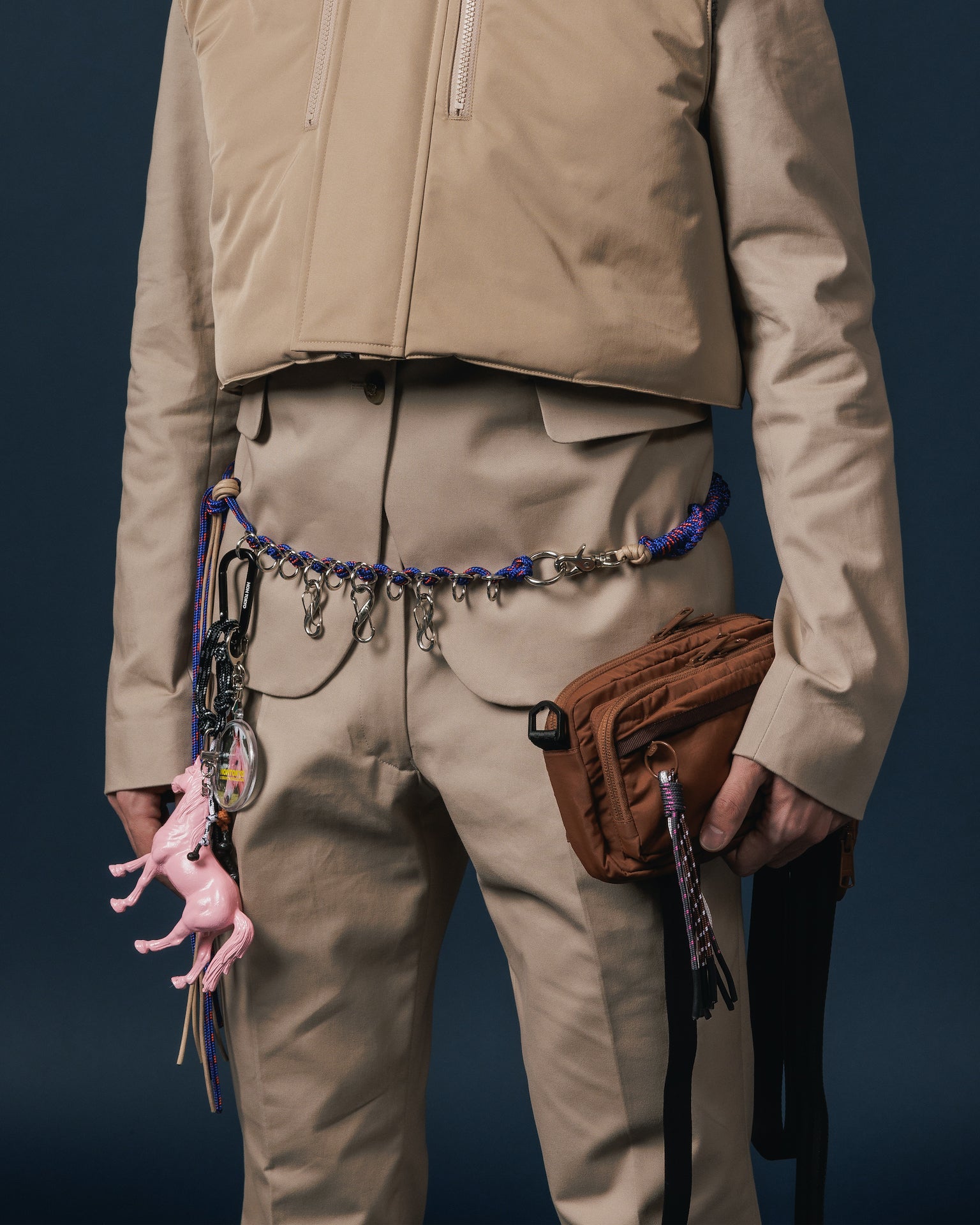様々なコードを組み合わせたフリンジキーホルダーとコーティングされた存在感のある馬のフィギアが付いたBIGキーホルダー。