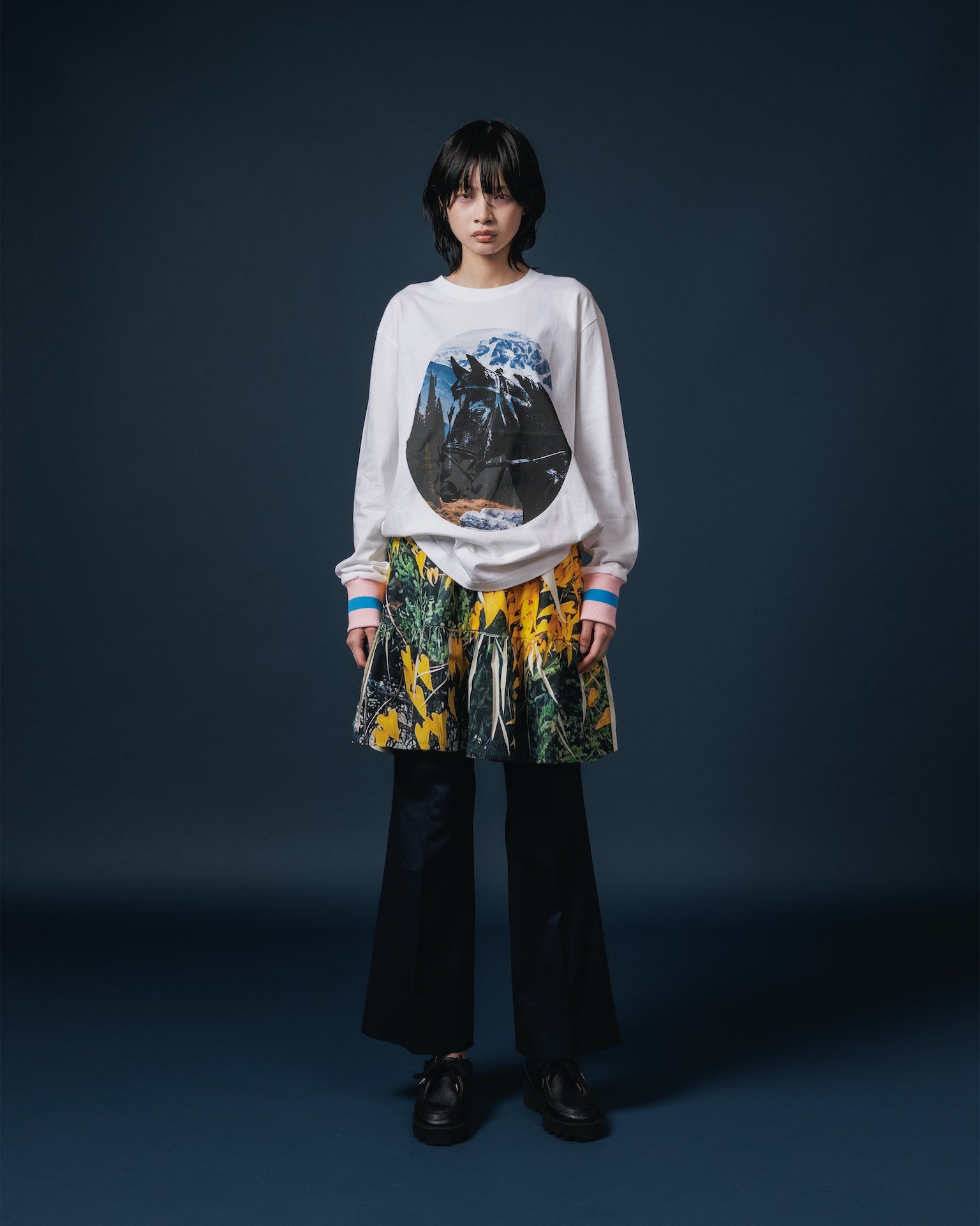 オリジナルグラフィックがプリントされた長袖Tシャツ。