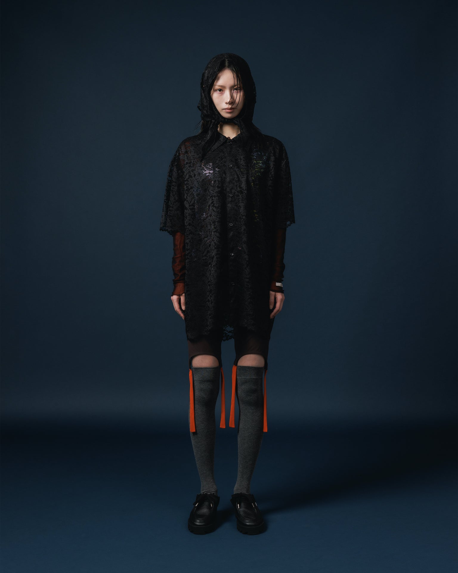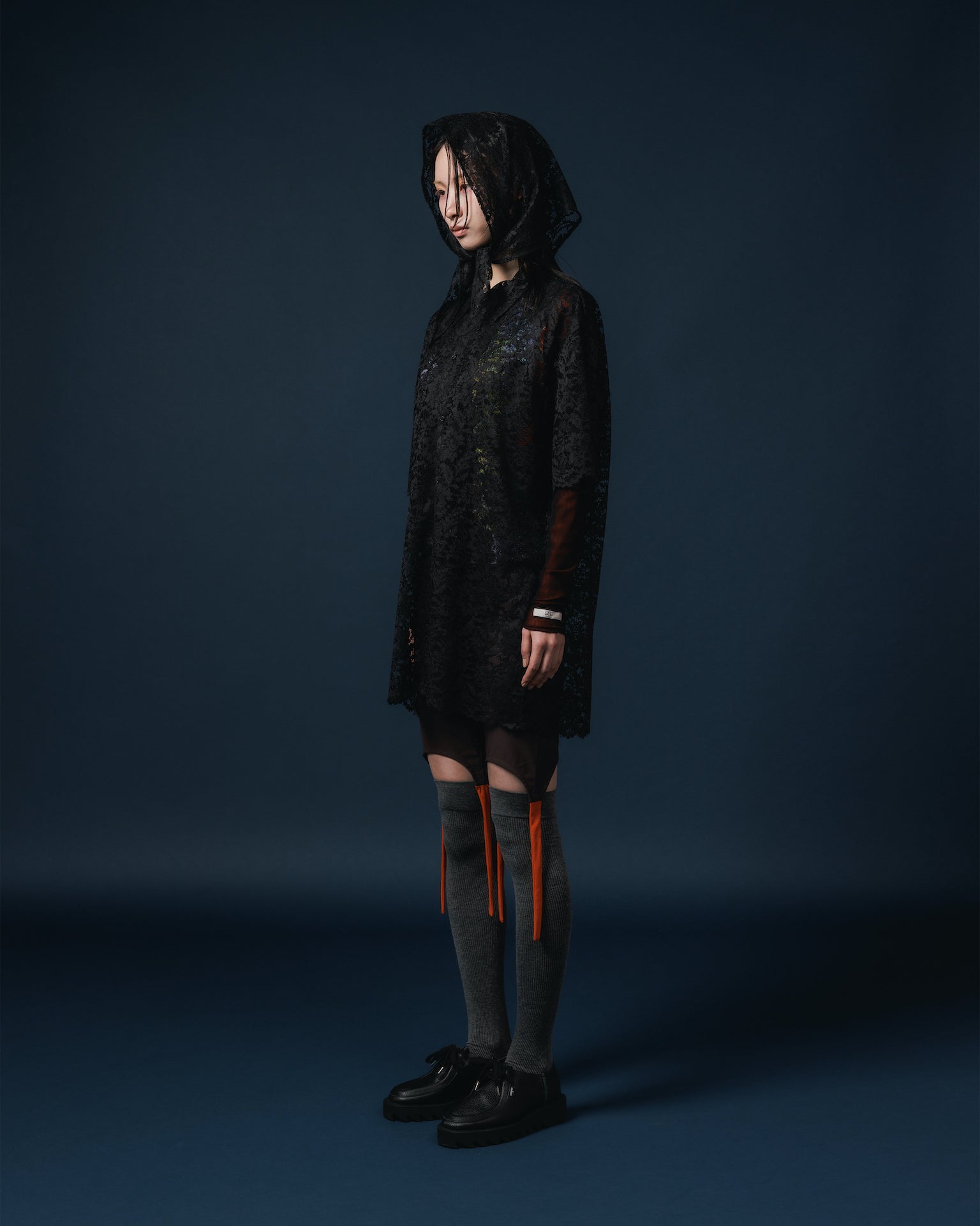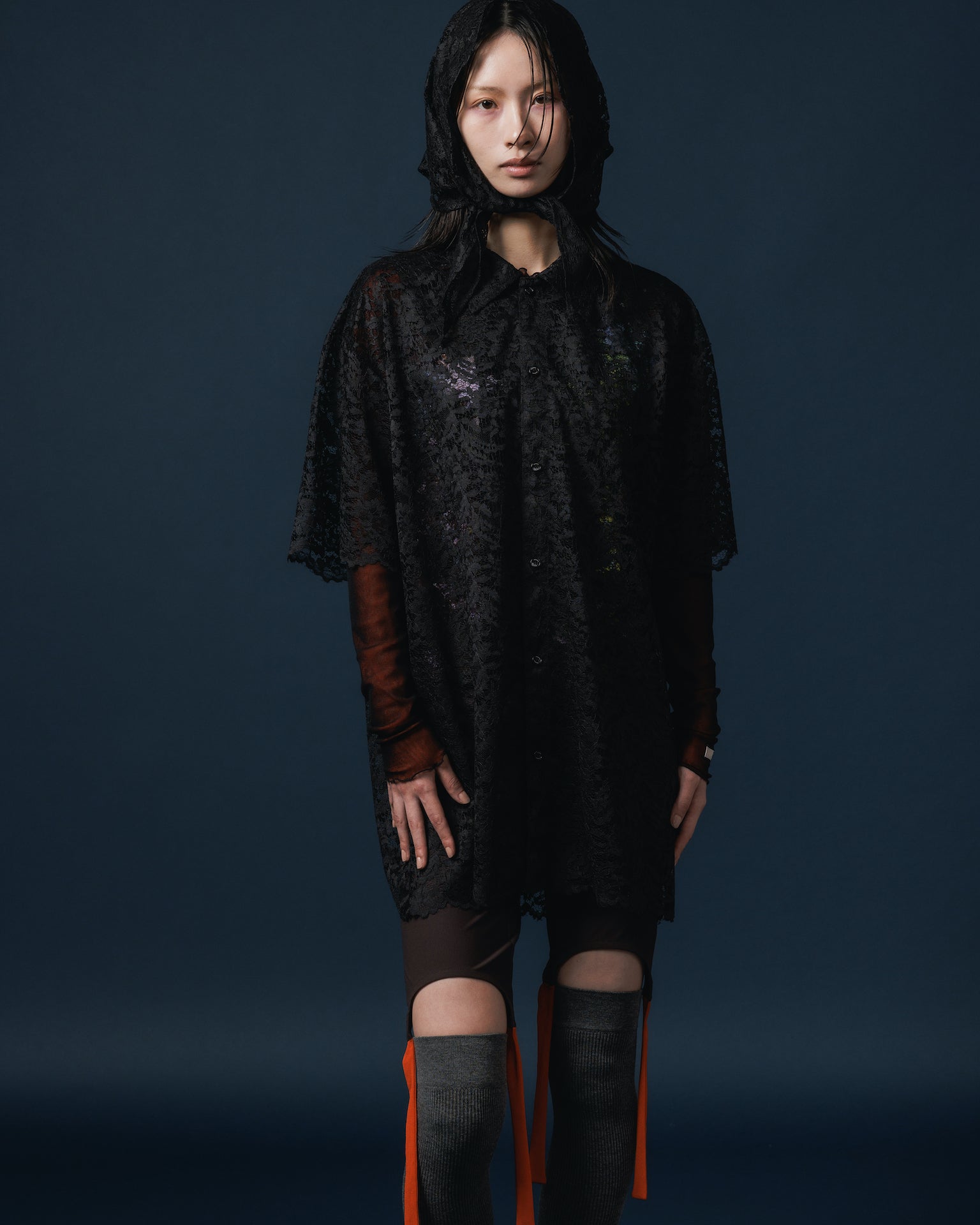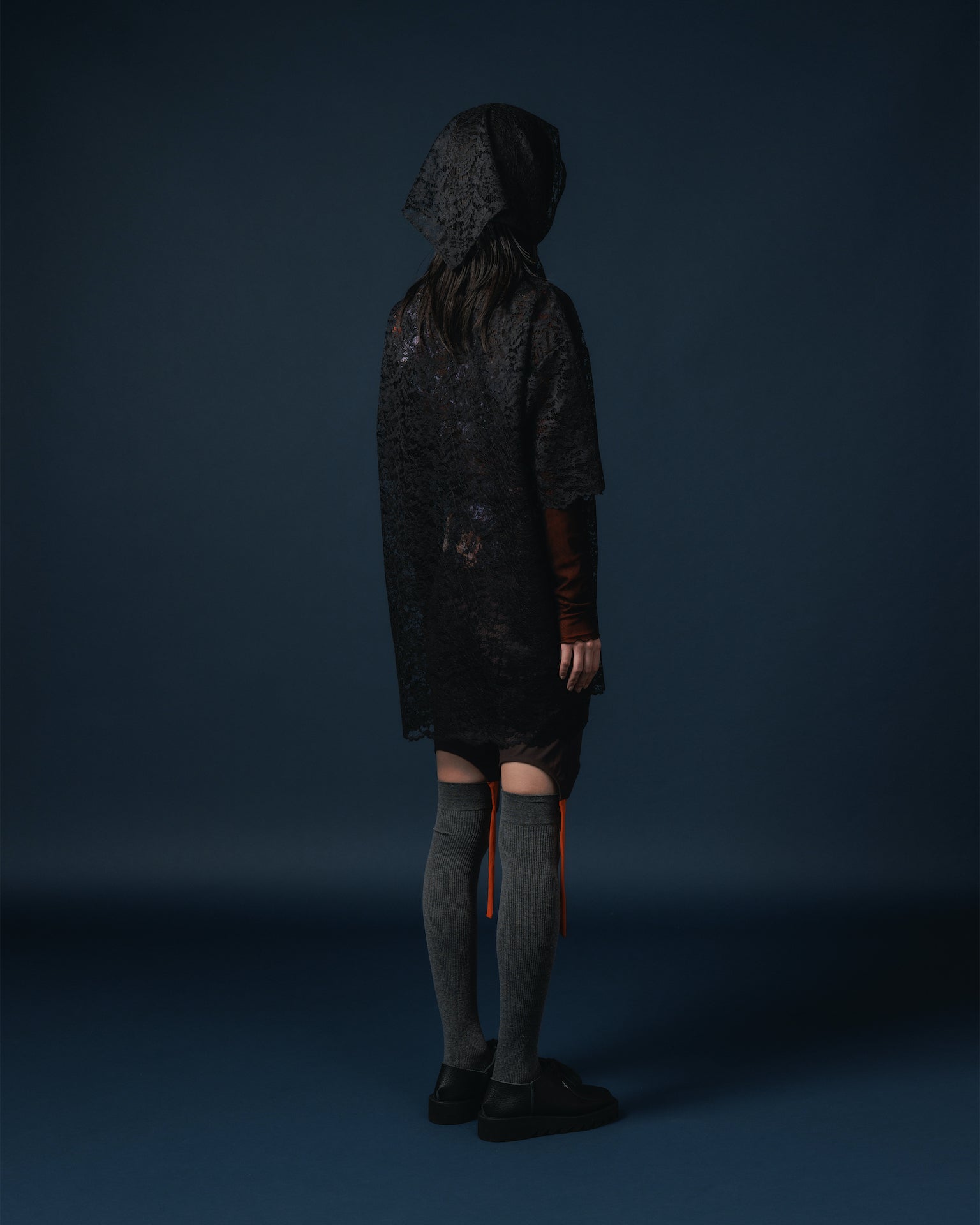裾はあえてレースの柄を活かす様に切りっぱなしになっていて、編地にも透け感がありレイヤーを楽しめるアイテムです。