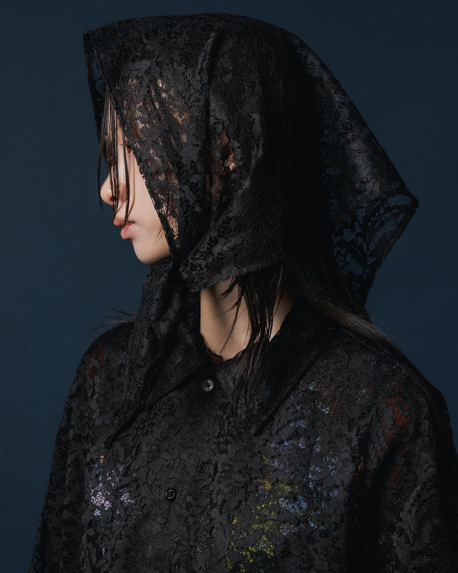 LACE HALF SLEEVE SHIRT & LACE SCARF (BLACK)
