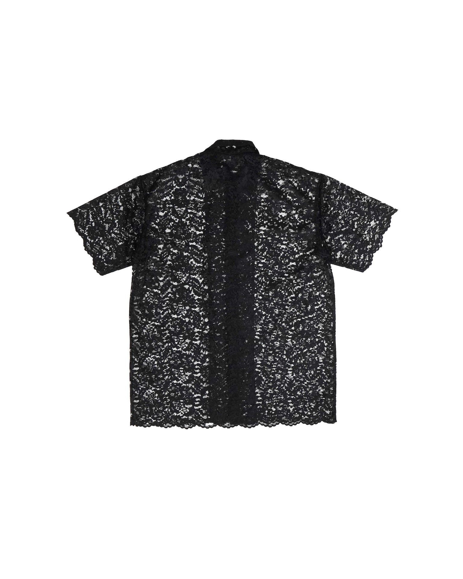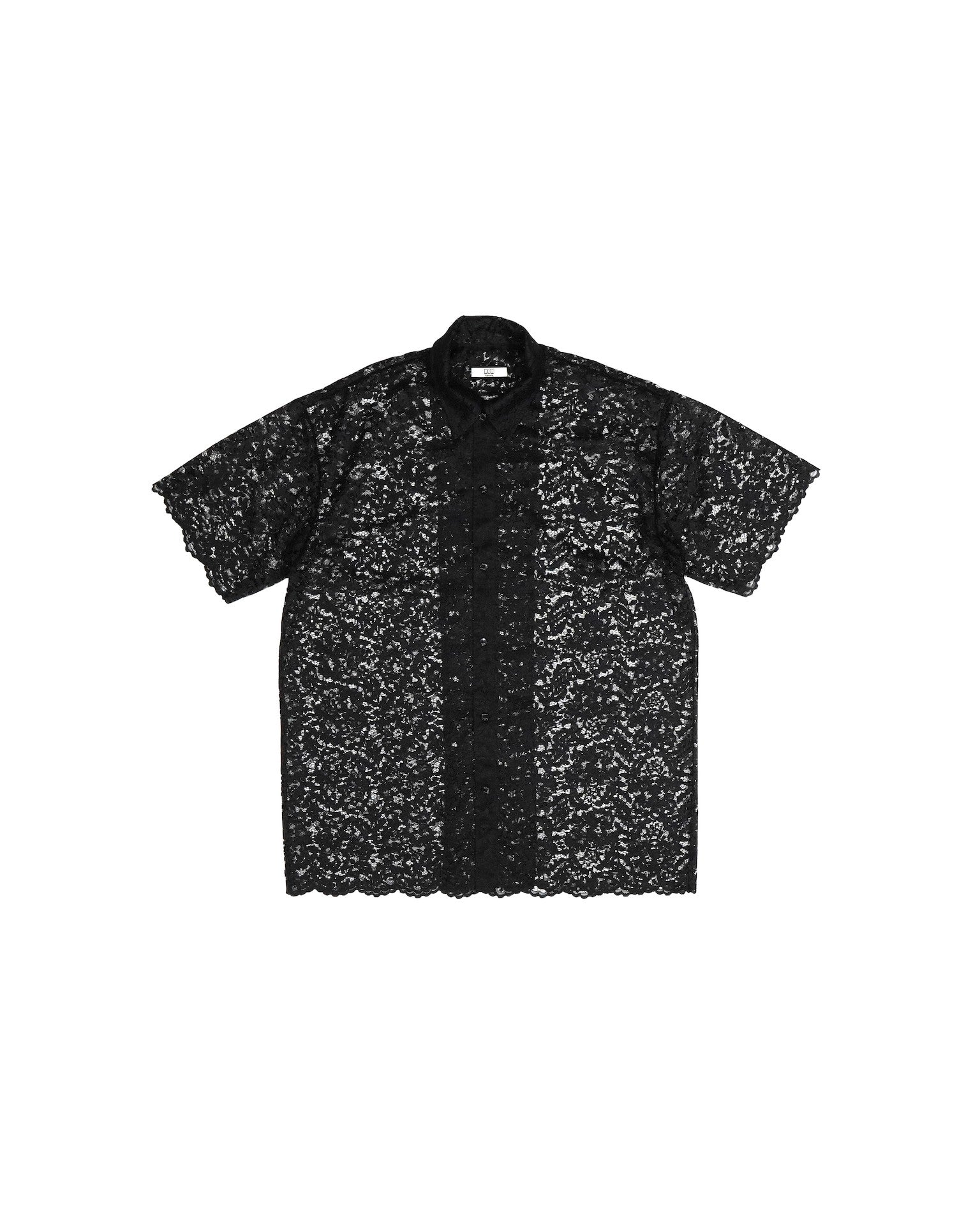 オリジナルの転写プリントが入ったレースの半袖シャツ。