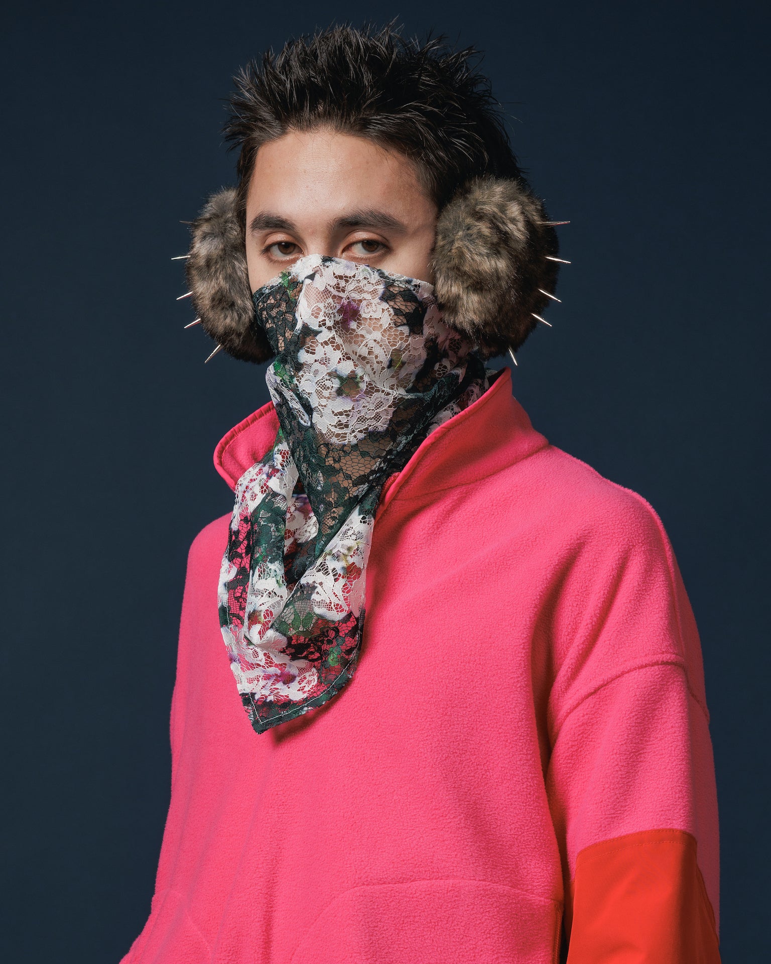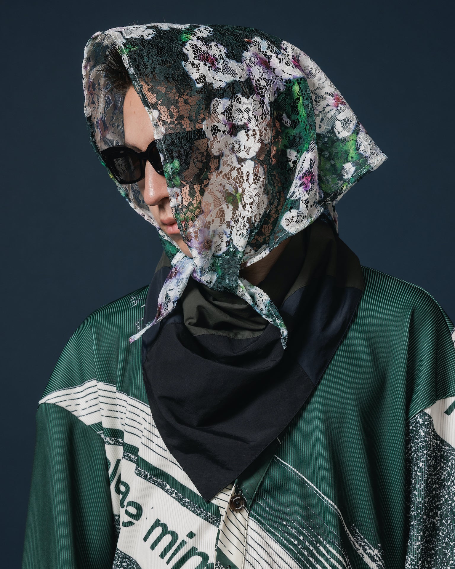LACE HALF SLEEVE SHIRT & LACE SCARF (FLOWER)