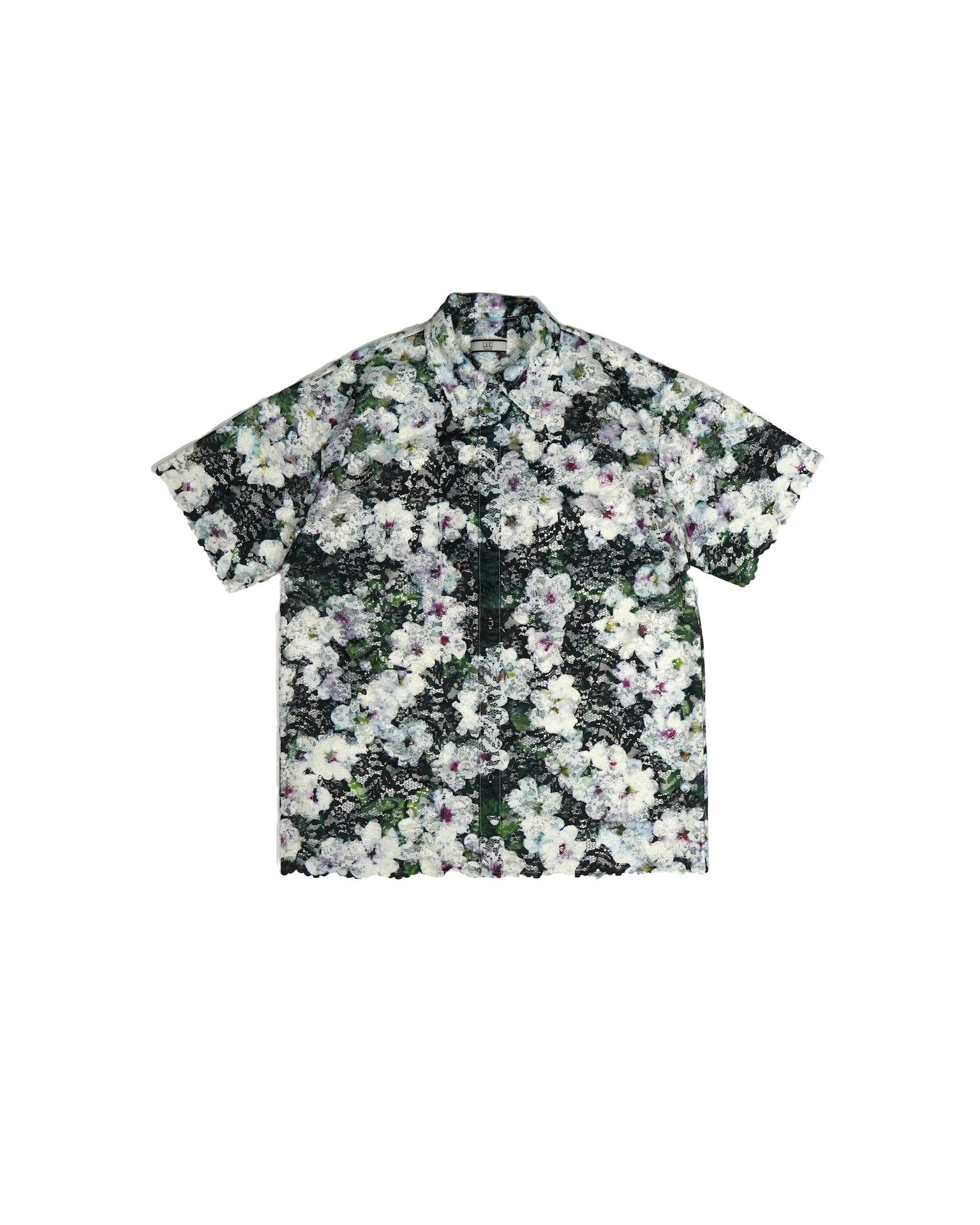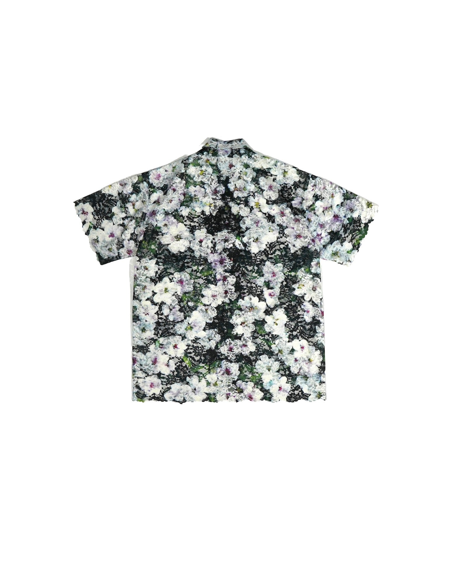 オリジナルの転写プリントが入ったレースの半袖シャツ。