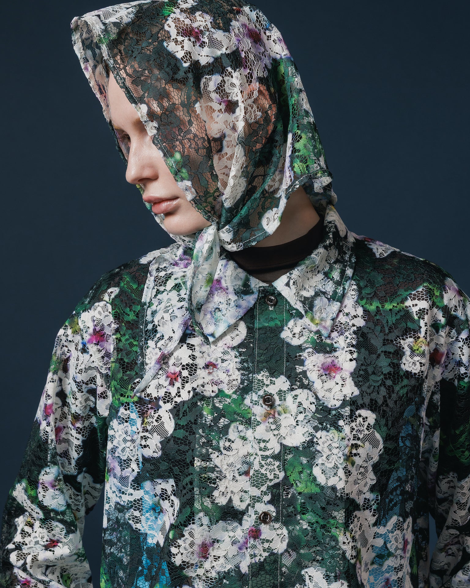 LACE LONG SLEEVE SHIRT & LACE SCARF (FLOWER)