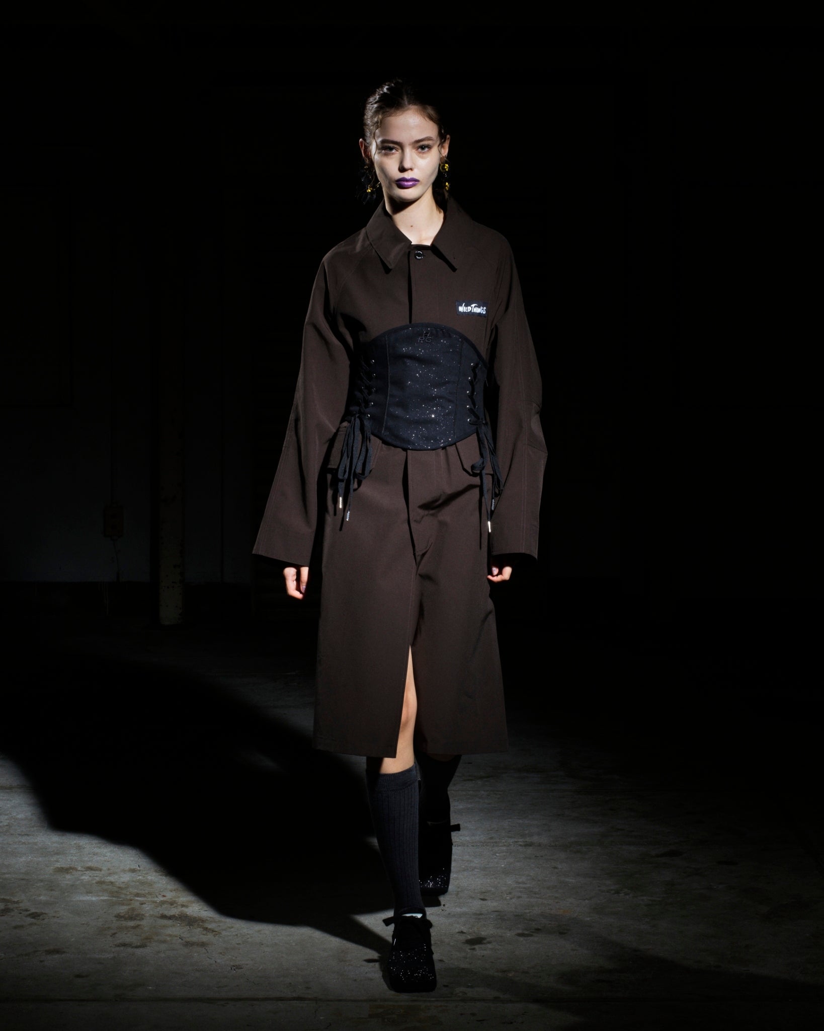 トップスやワンピースの上からはもちろんのこと、生地がしっかりしているのでアウターの上からのレイヤードもオススメです。