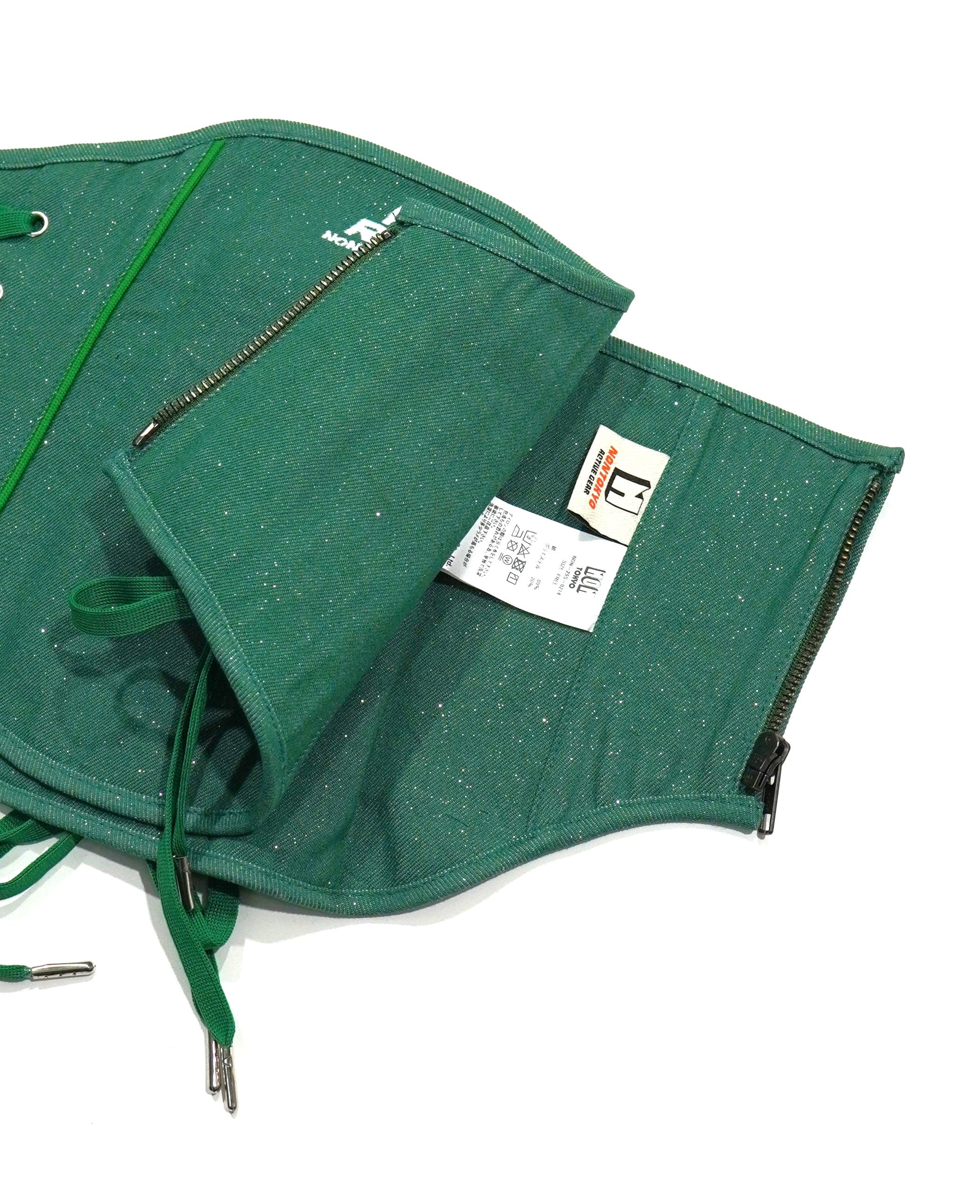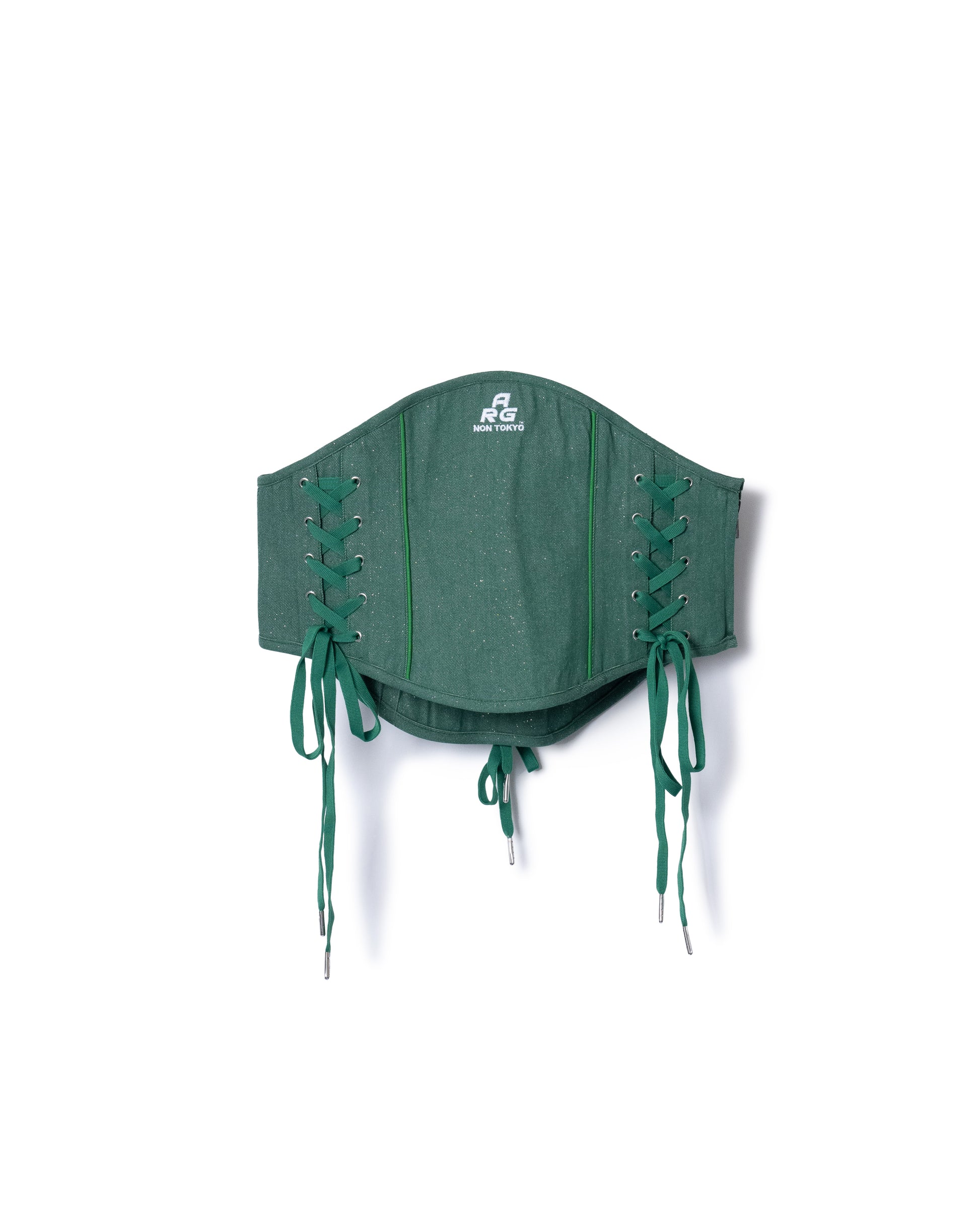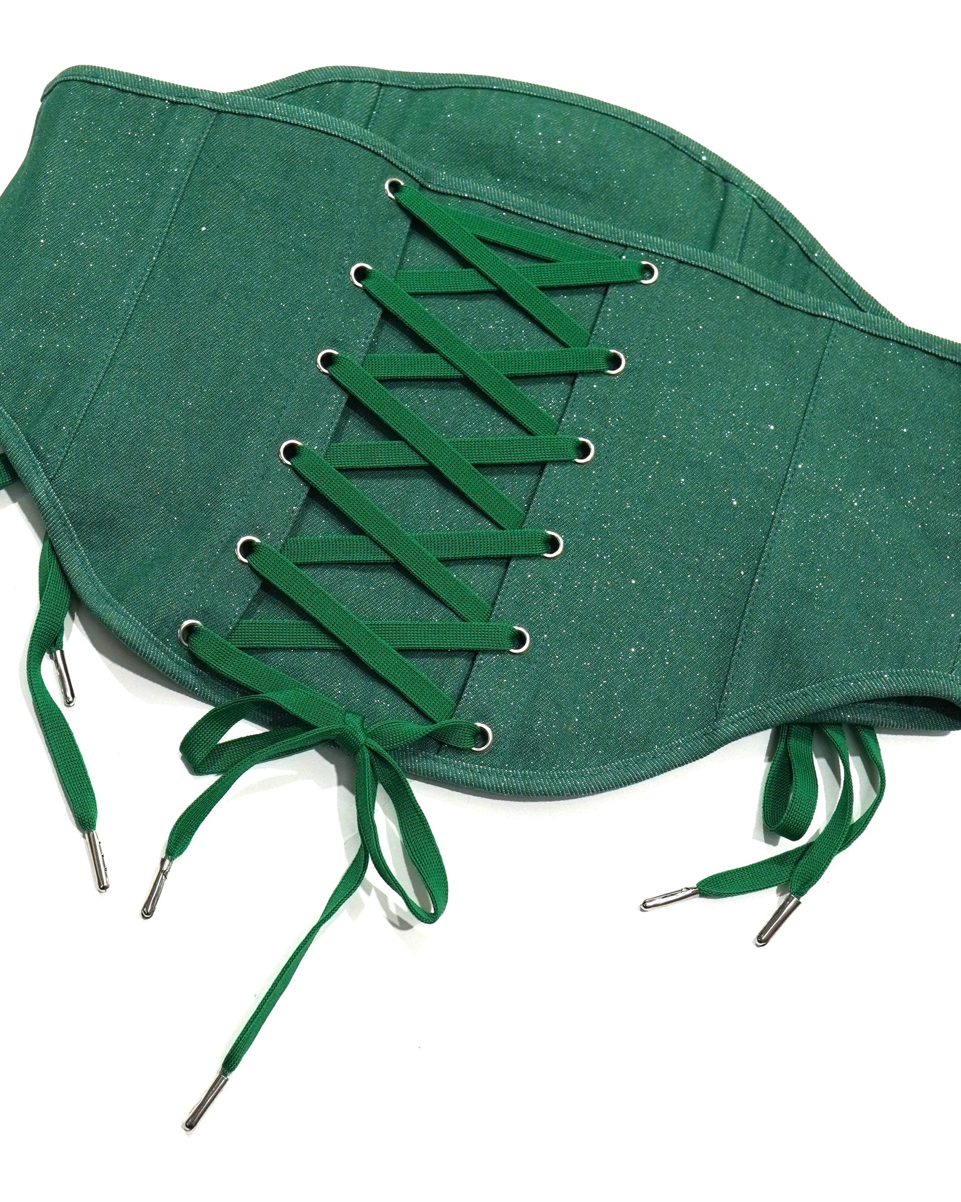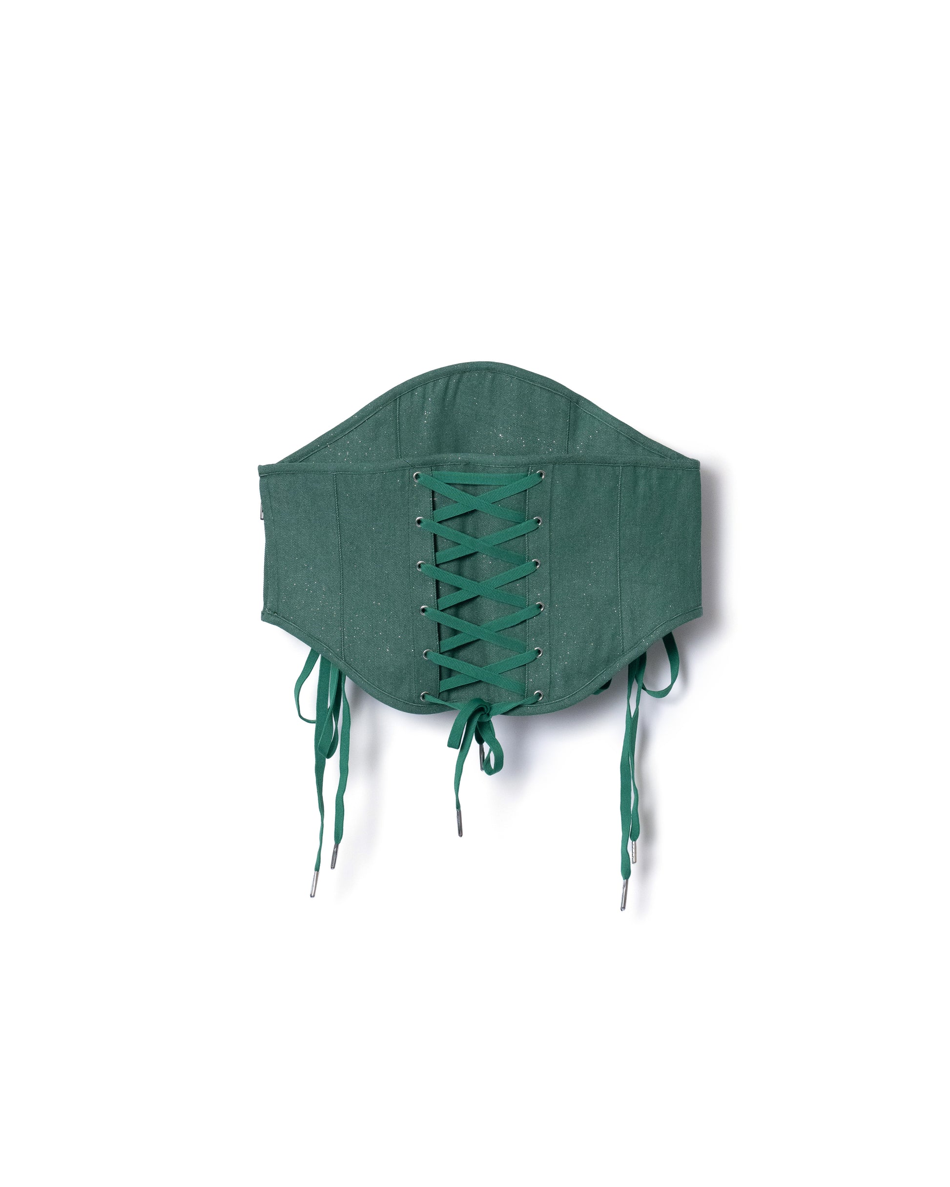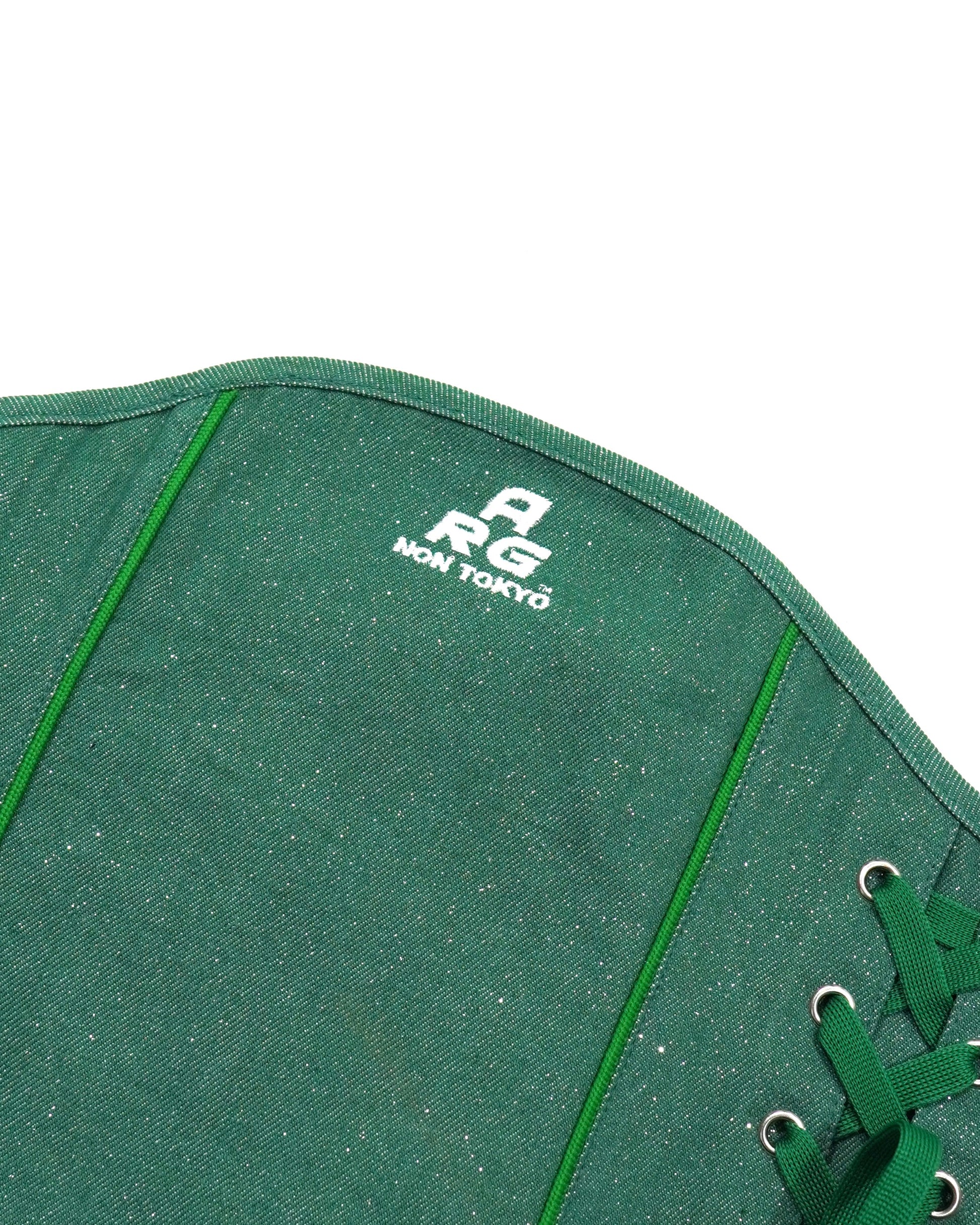 LAME DENIM LACE-UP CORSET (GREEN)