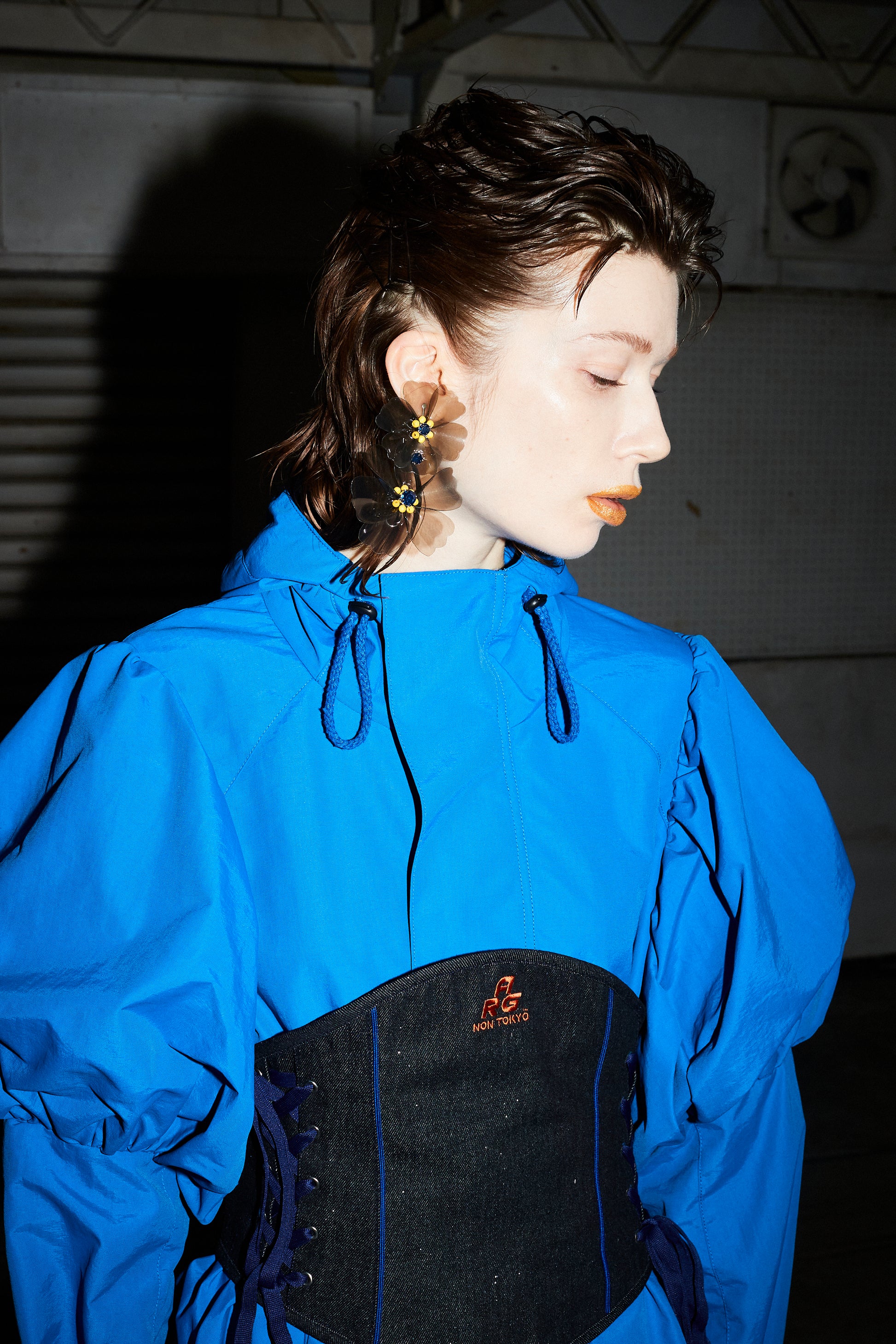 LAME DENIM LACE-UP CORSET (INDIGO)