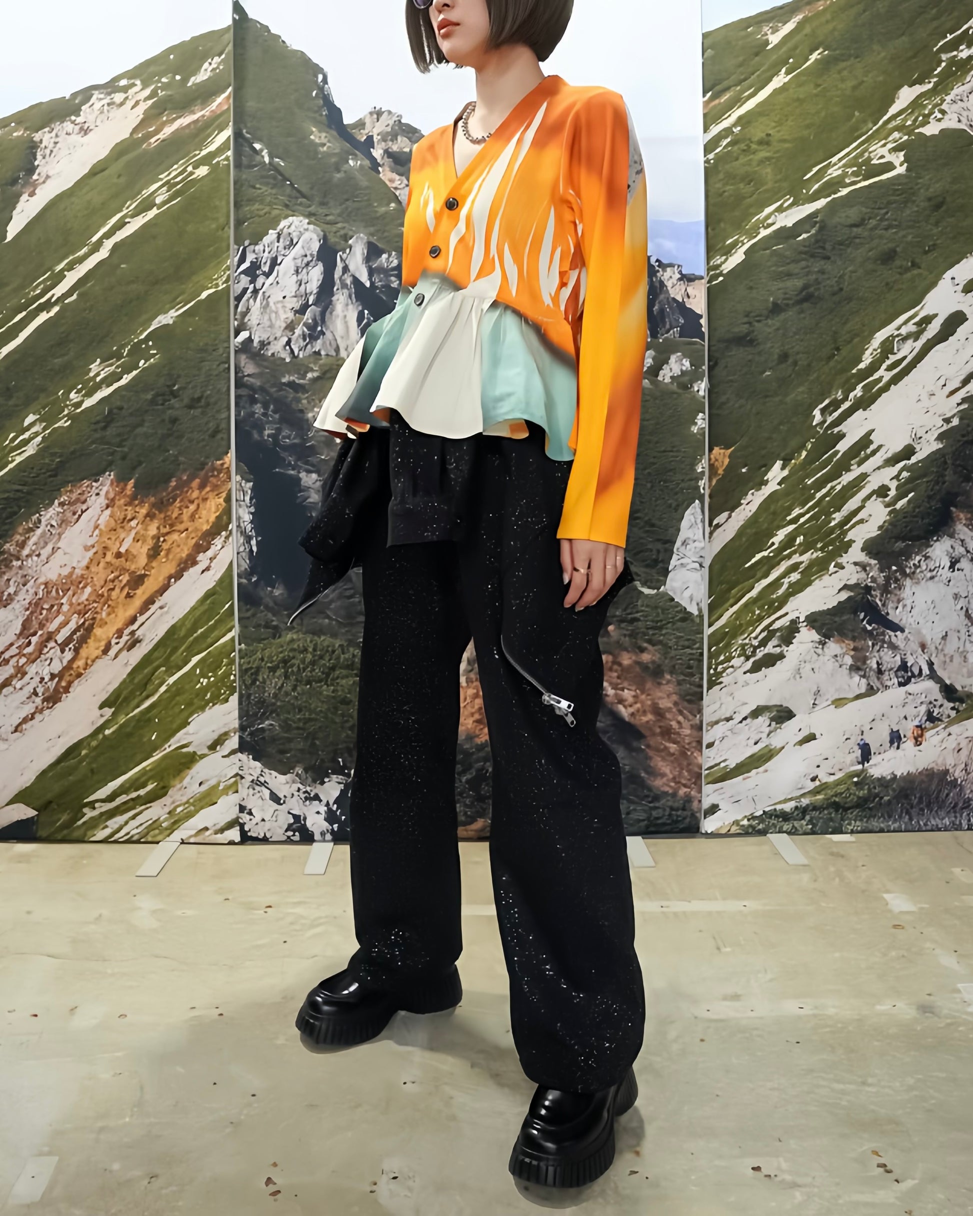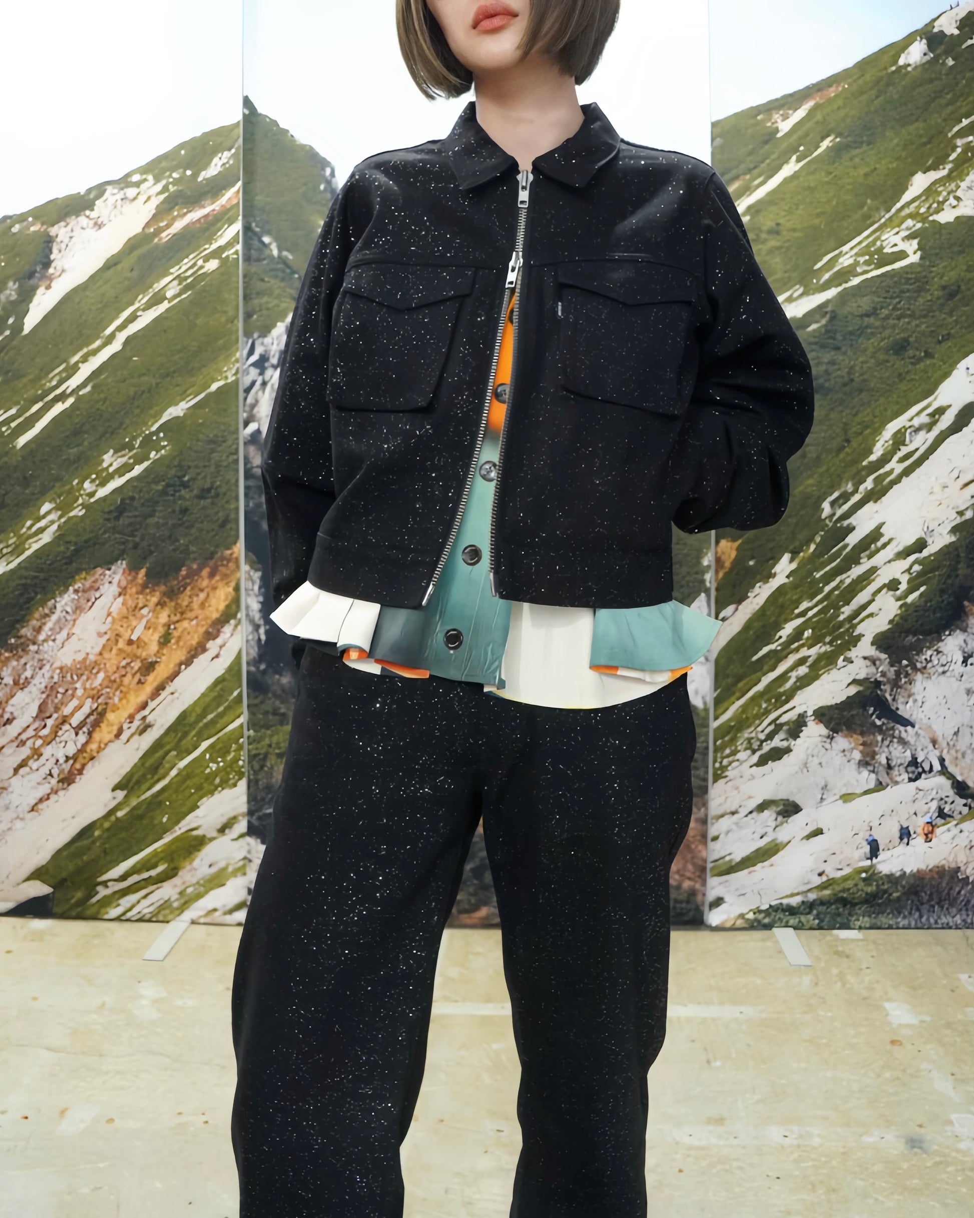 セットアップでジャケットとコルセットを展開しています。