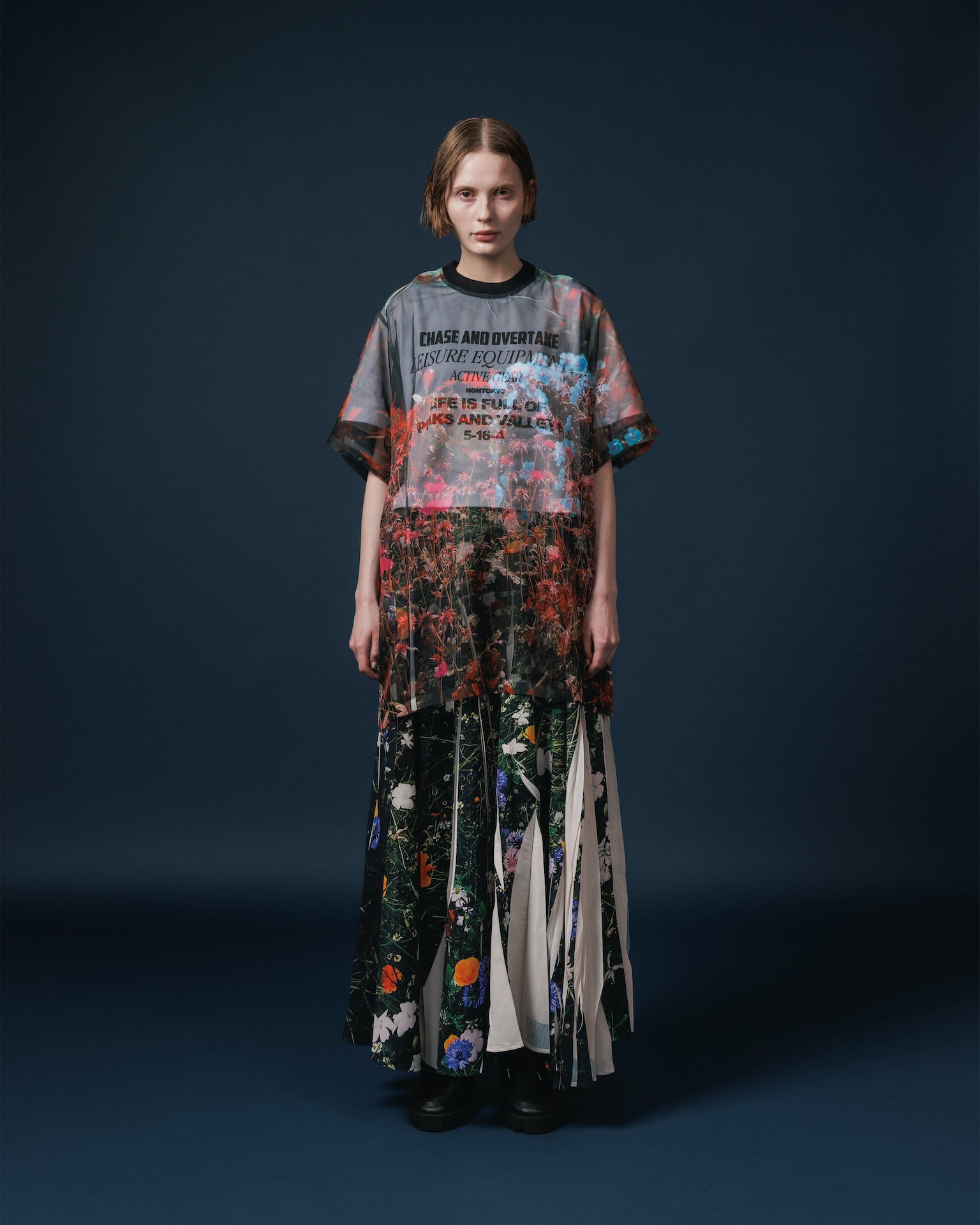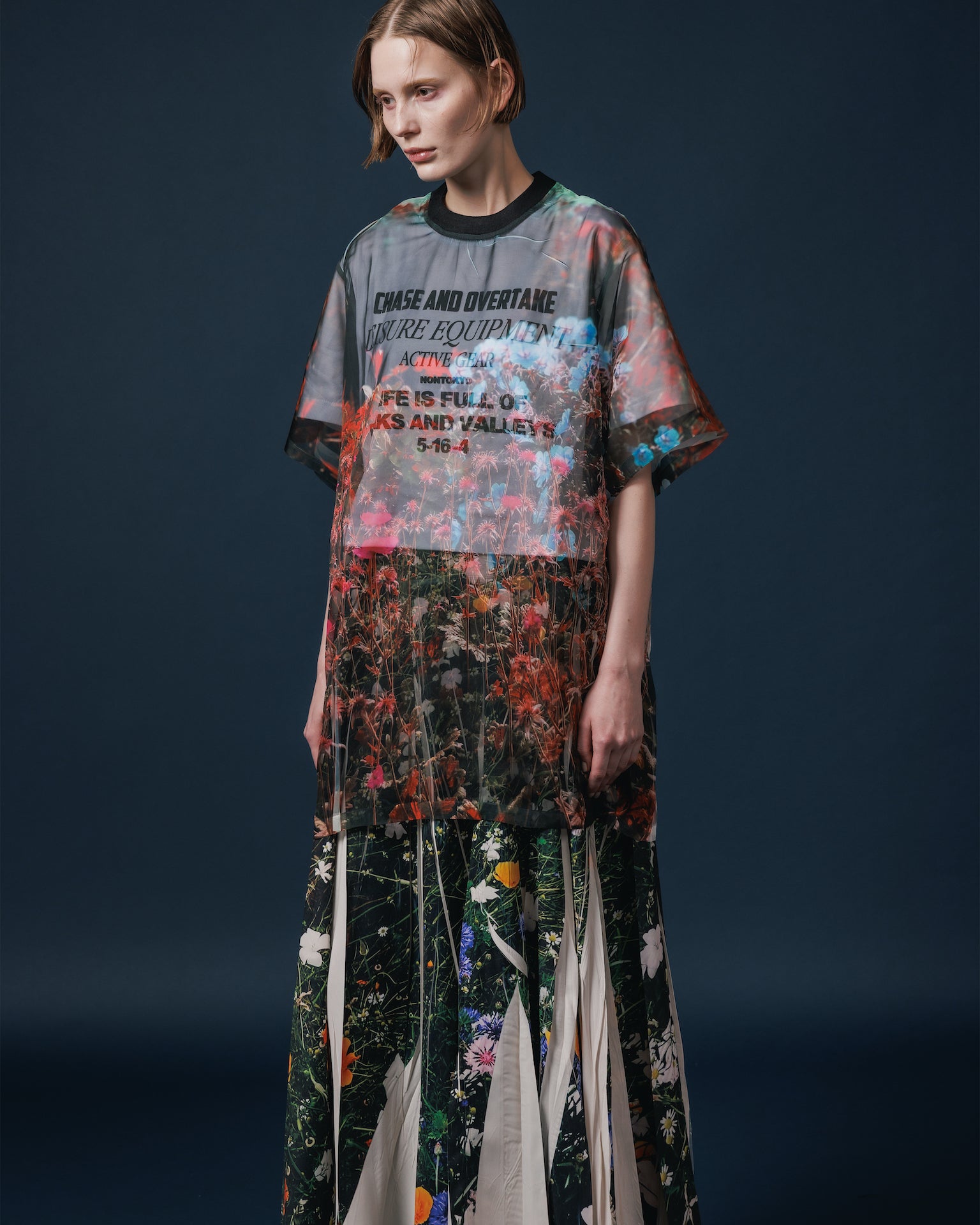 オリジナルグラフィックがプリントされたショート丈の半袖 Tシャツ。