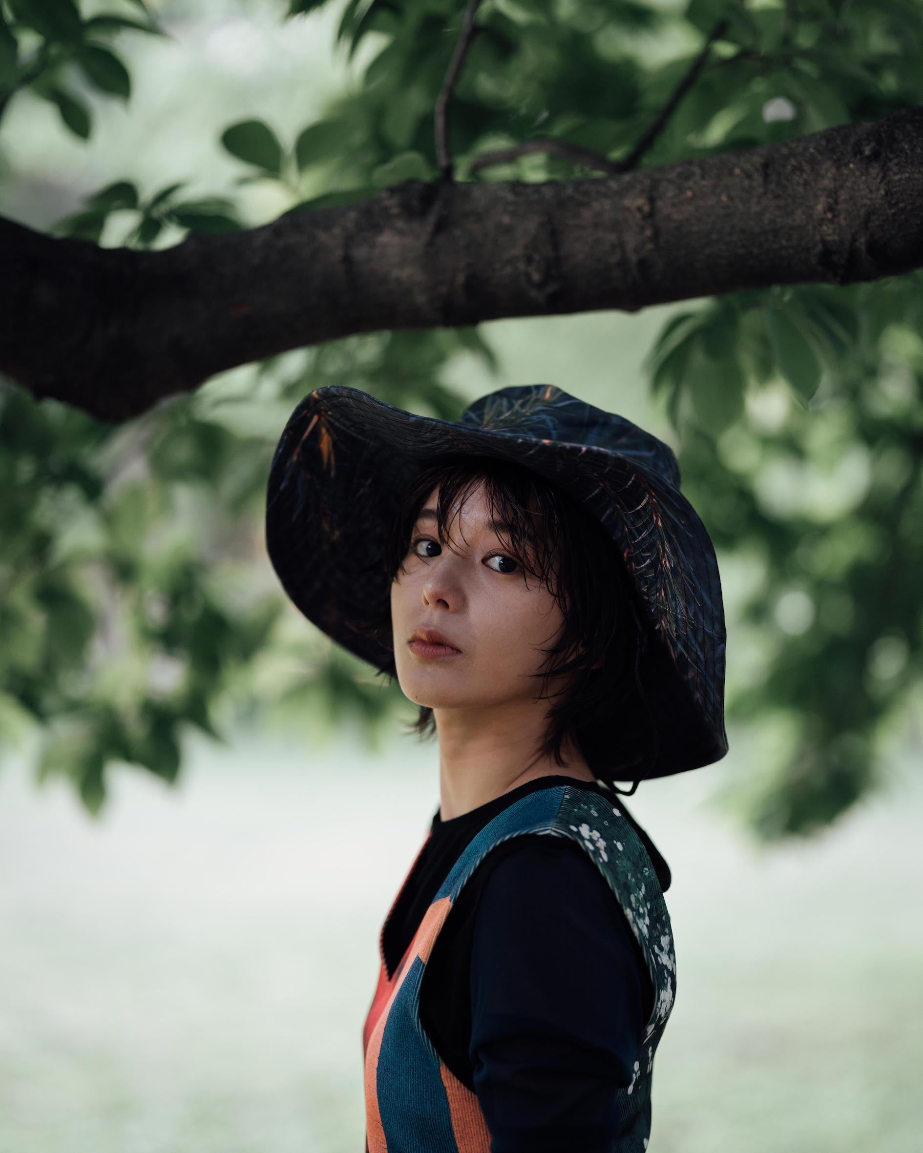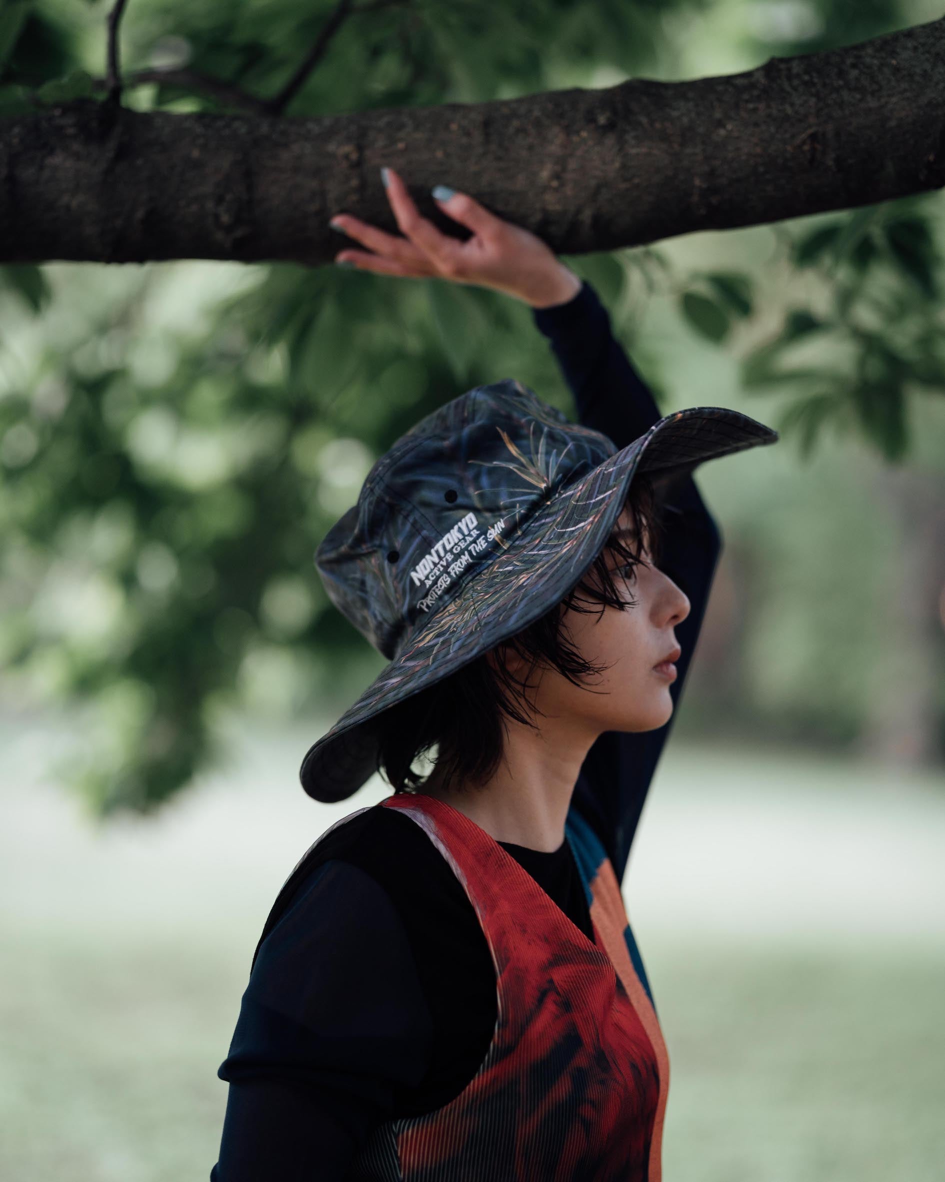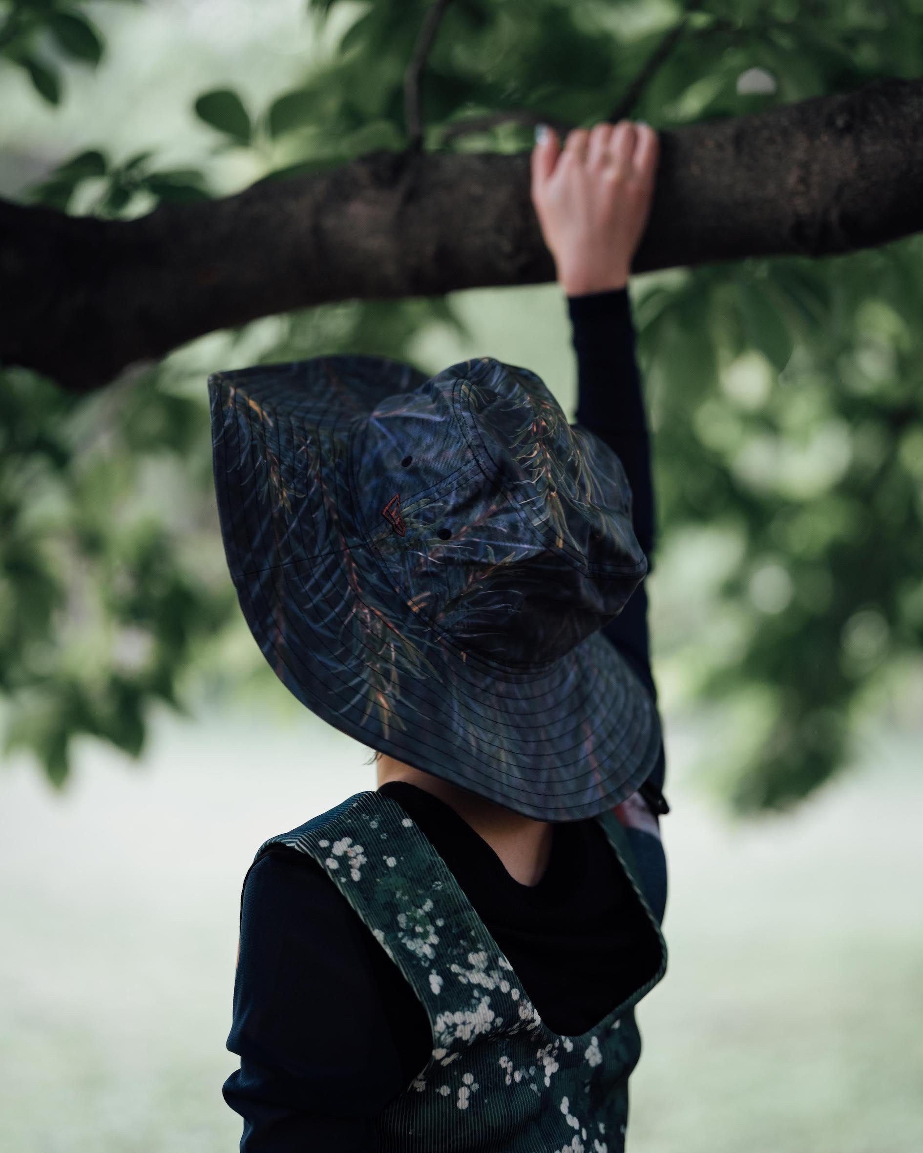 長めのブリムが特徴です。長いツバは日除けの効果に加え、顔周りを小顔に見せてくれます。