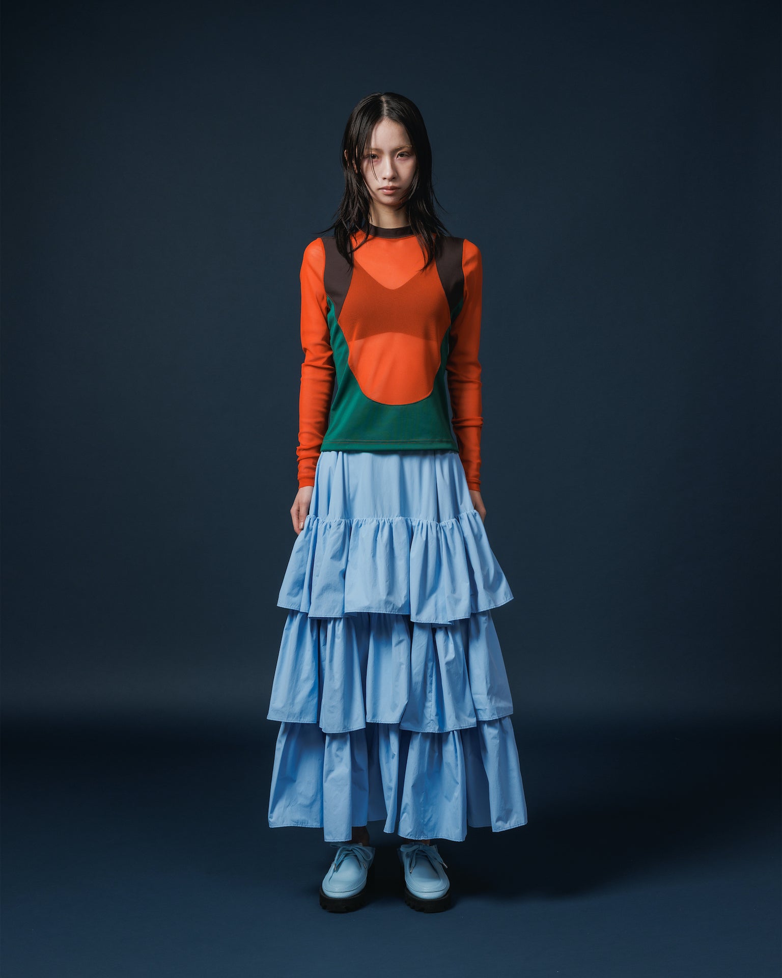 NYLON TIEREDSKIRT (BLUE)