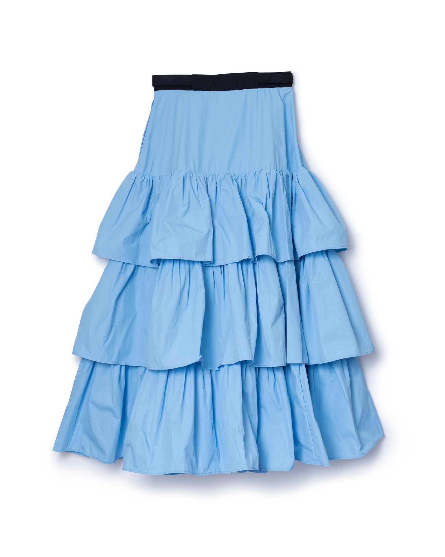 たっぷりギャザーが入ったナイロン素材のティアードスカート。