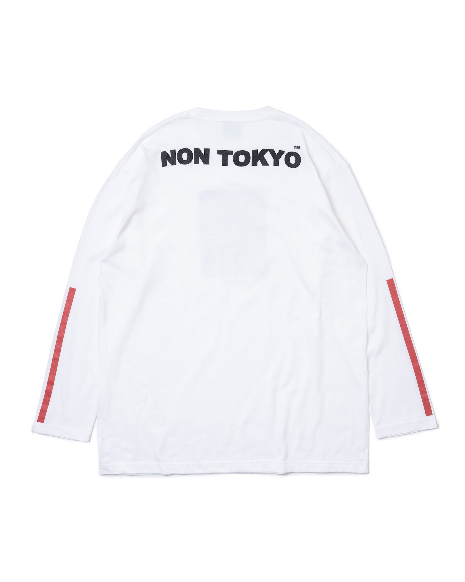 オリジナルグラフィックがプリントされた長袖Tシャツ。
