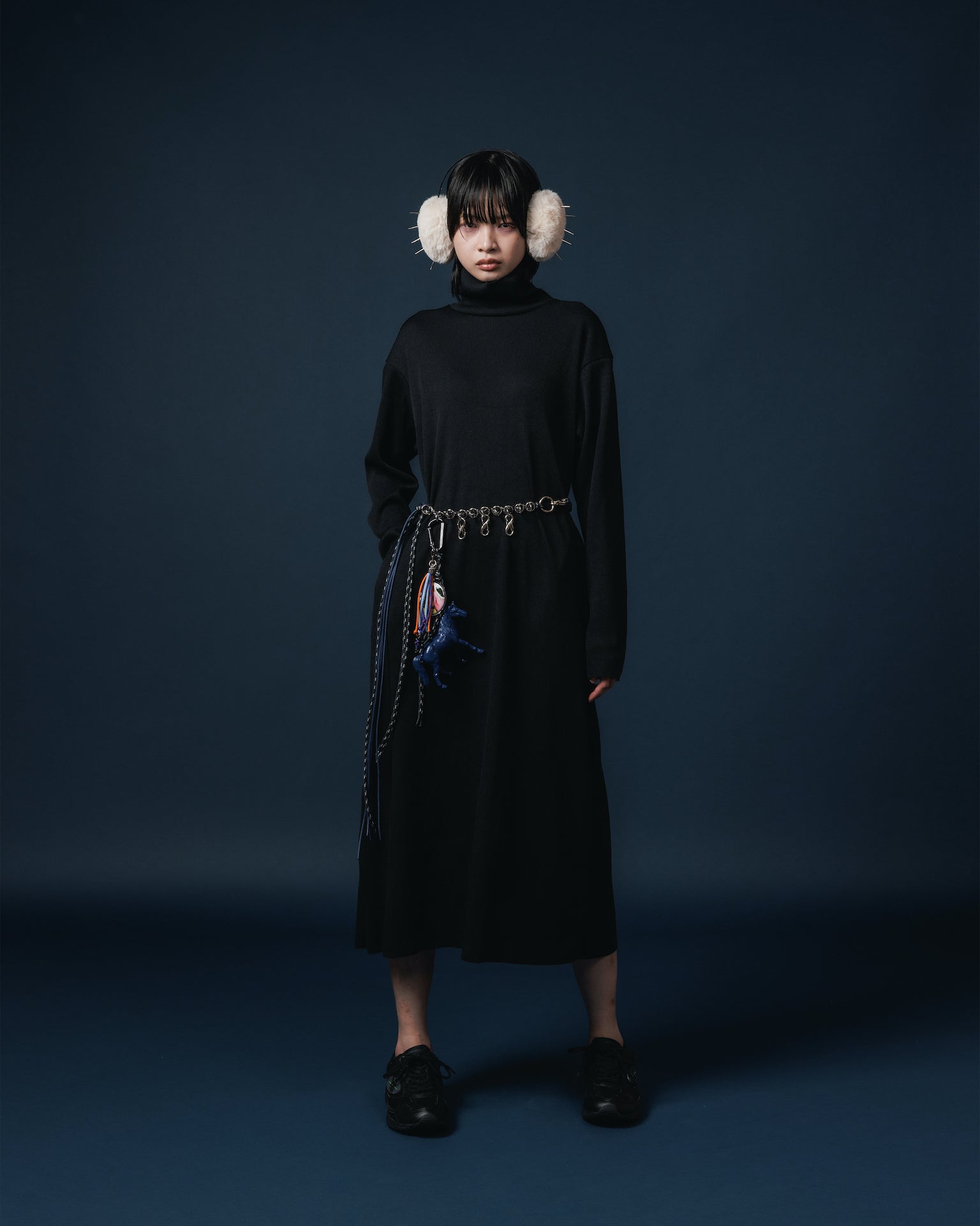 PRINT RIB HI-NECK ONE-PIECE (BLACK)