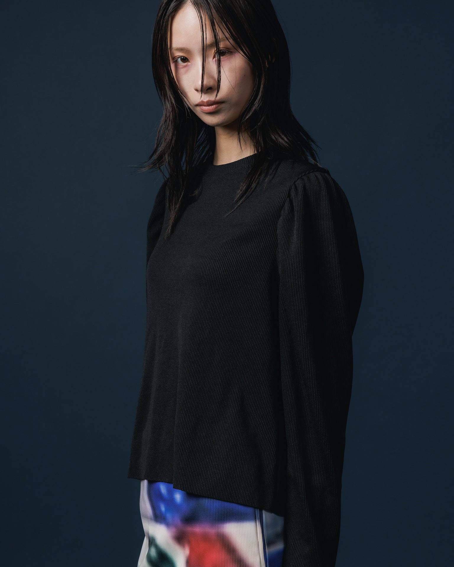 RIB PUFF SLEEVE C/S (BLACK)