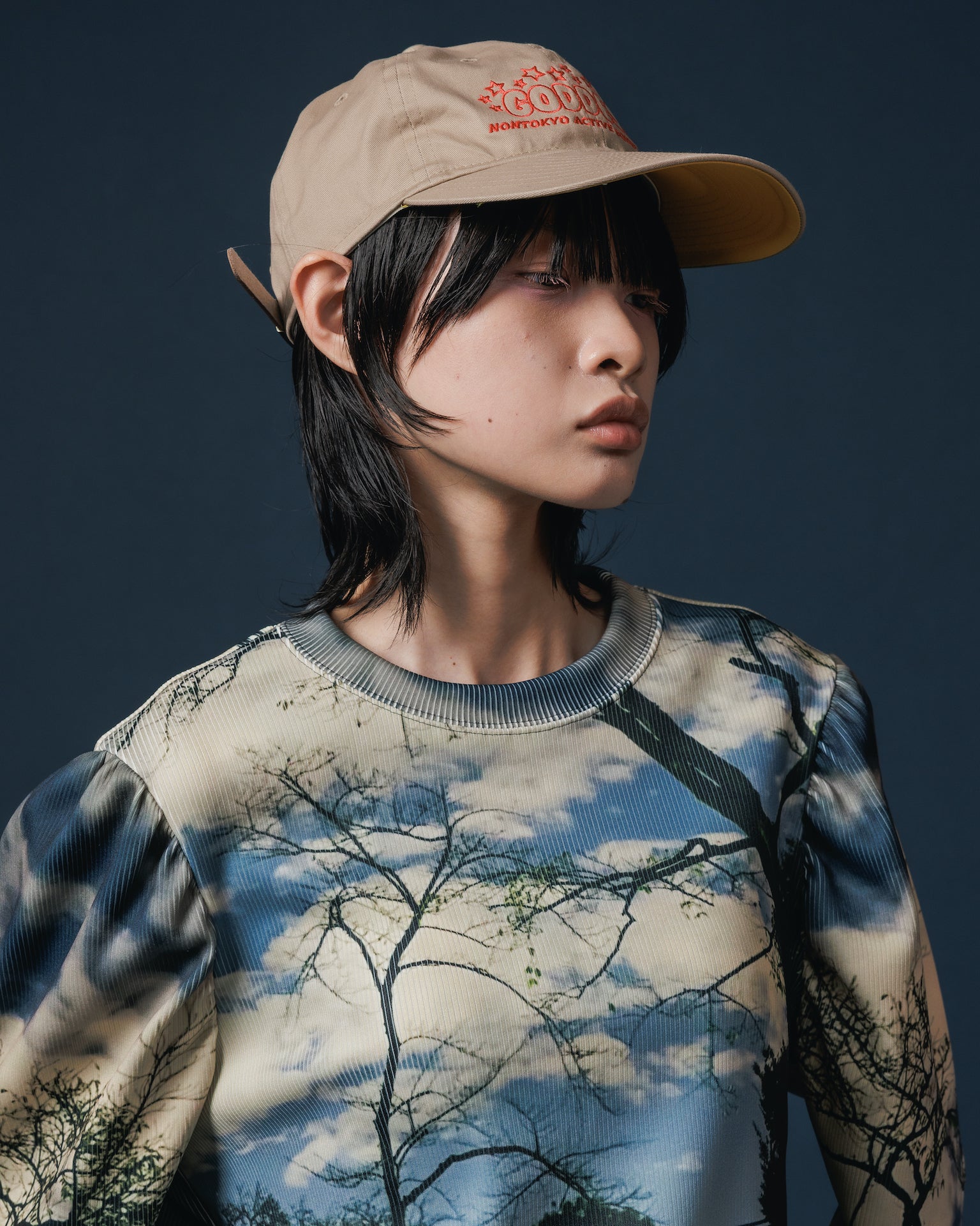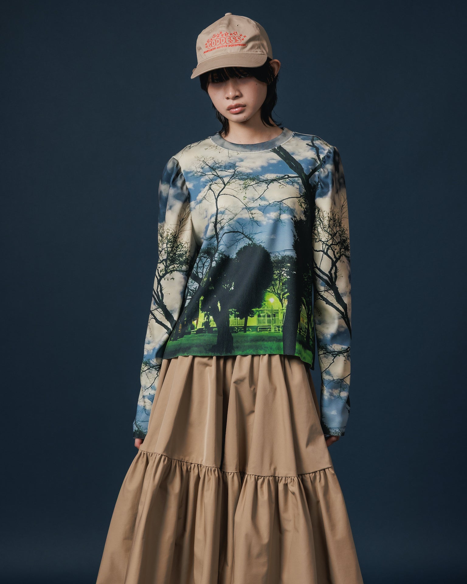 PRINT RIB PUFF SLEEVE C/S (PARK)