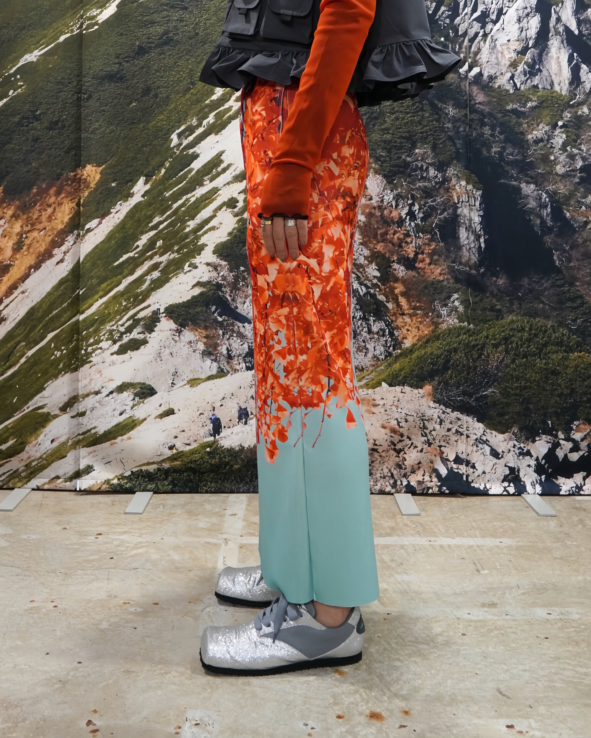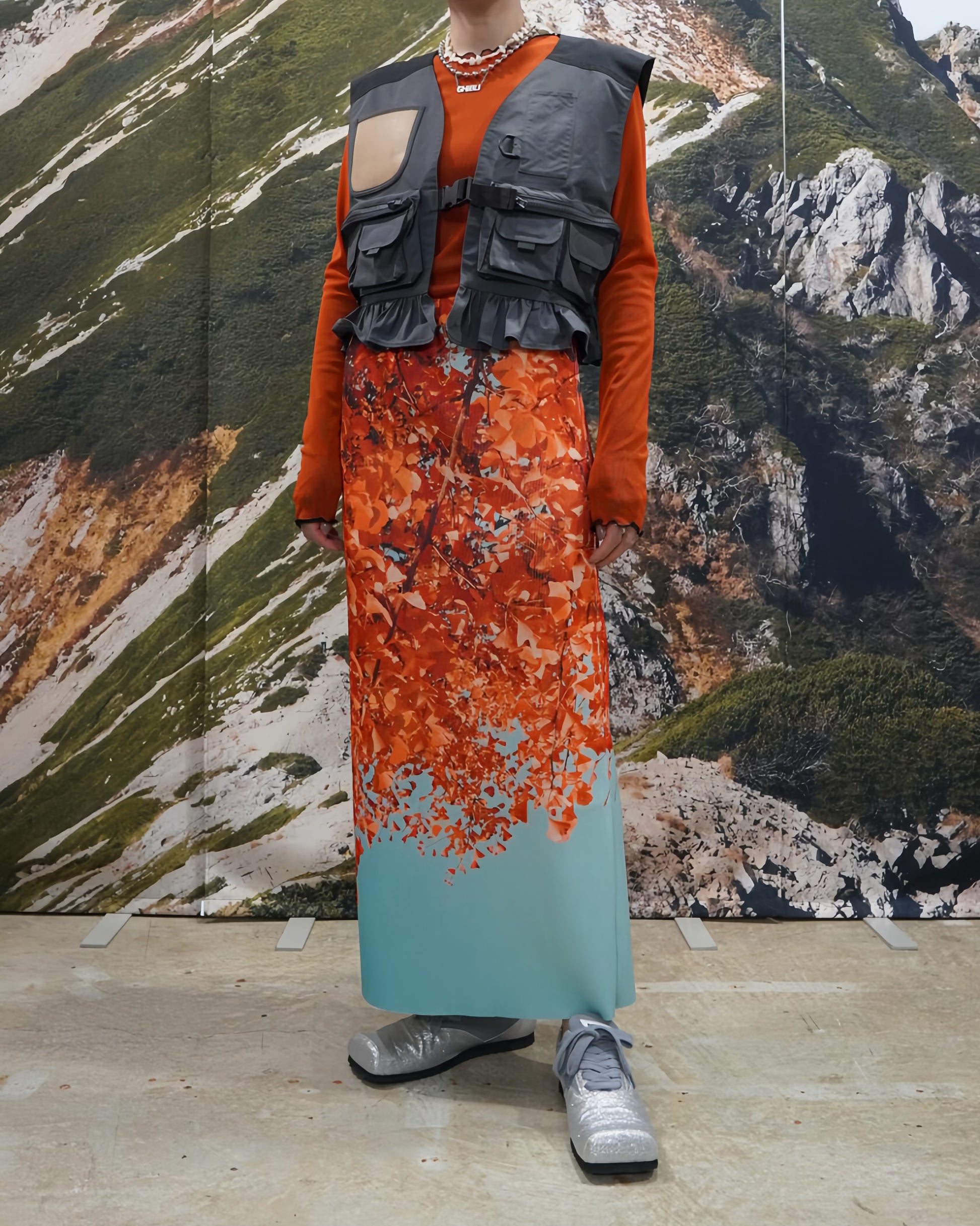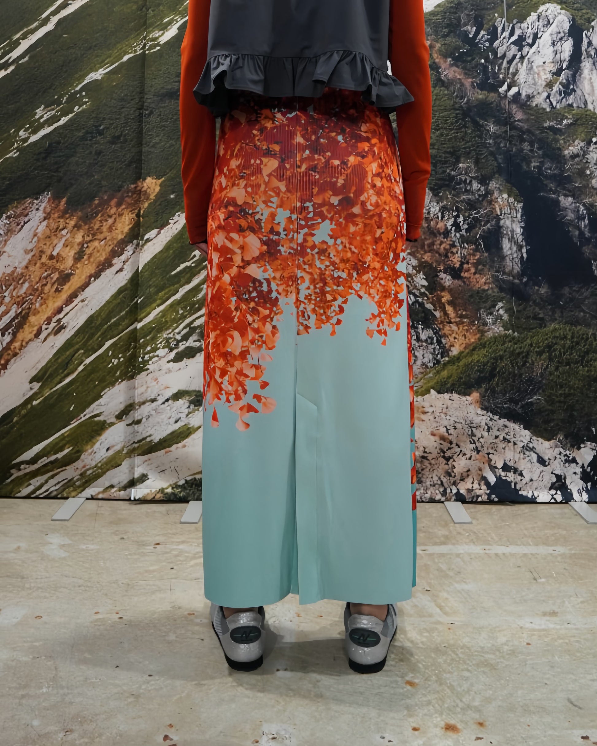 タイトなシルエットながらも後ろ裾にスリットが入っており、足さばきもしやすくなっています。