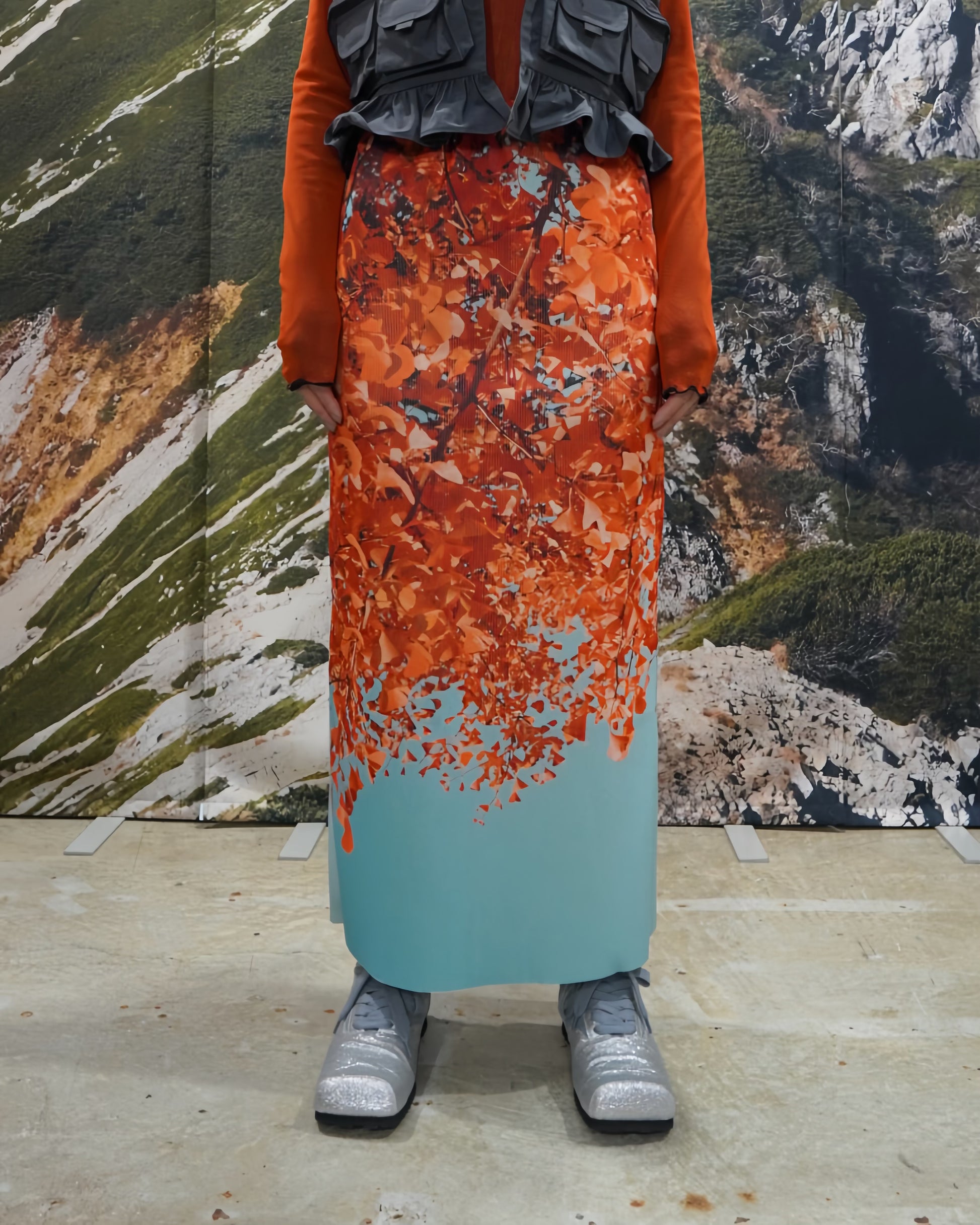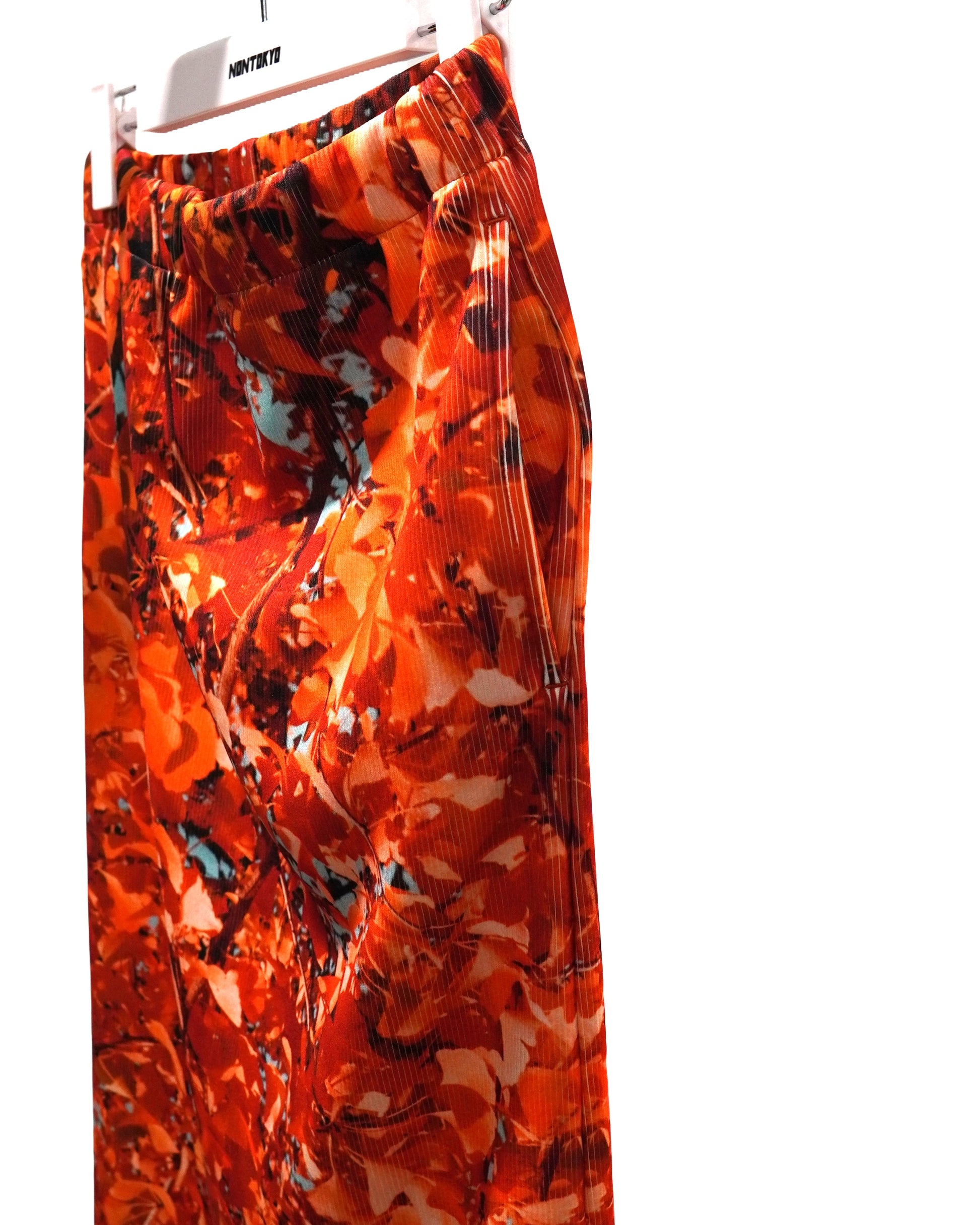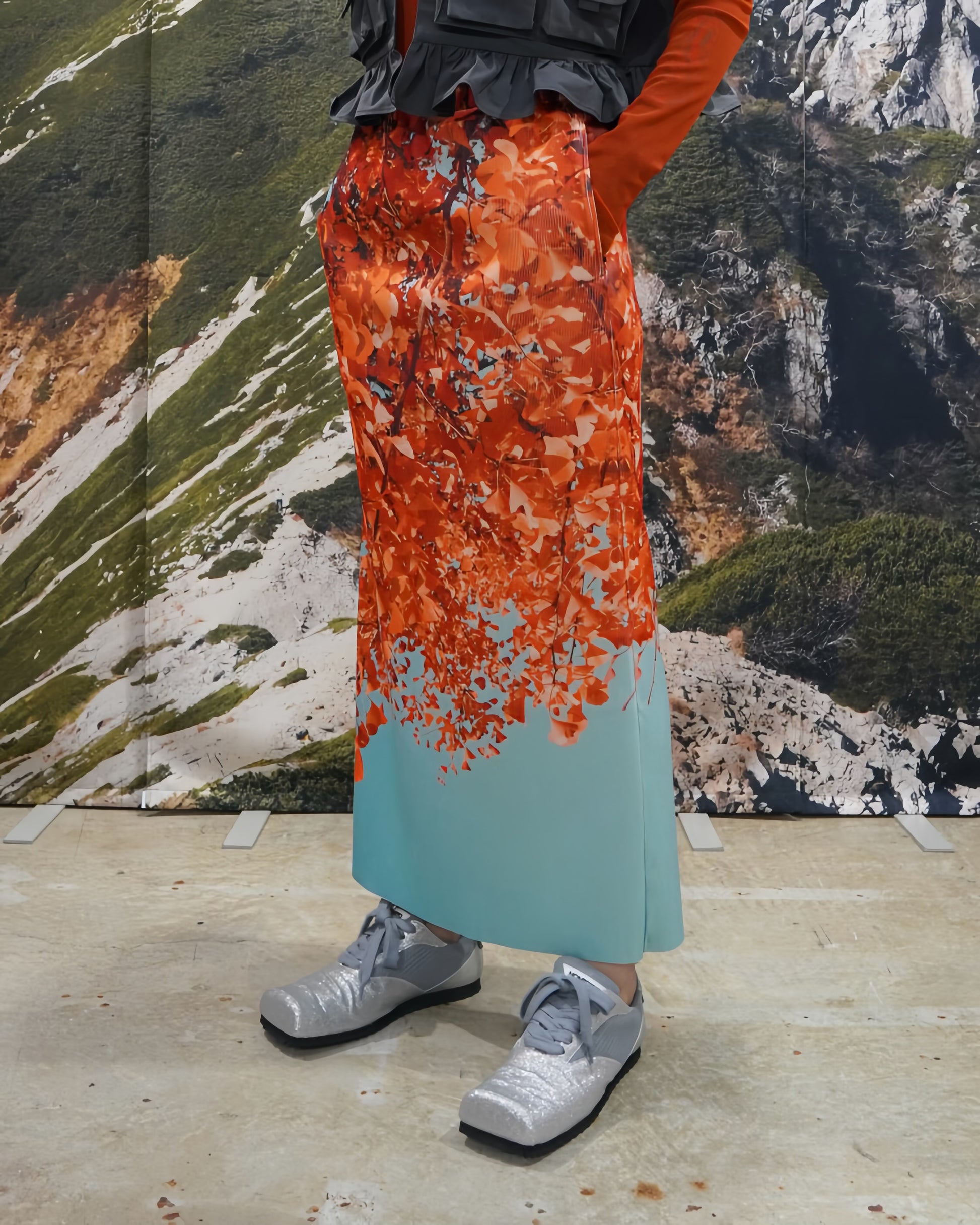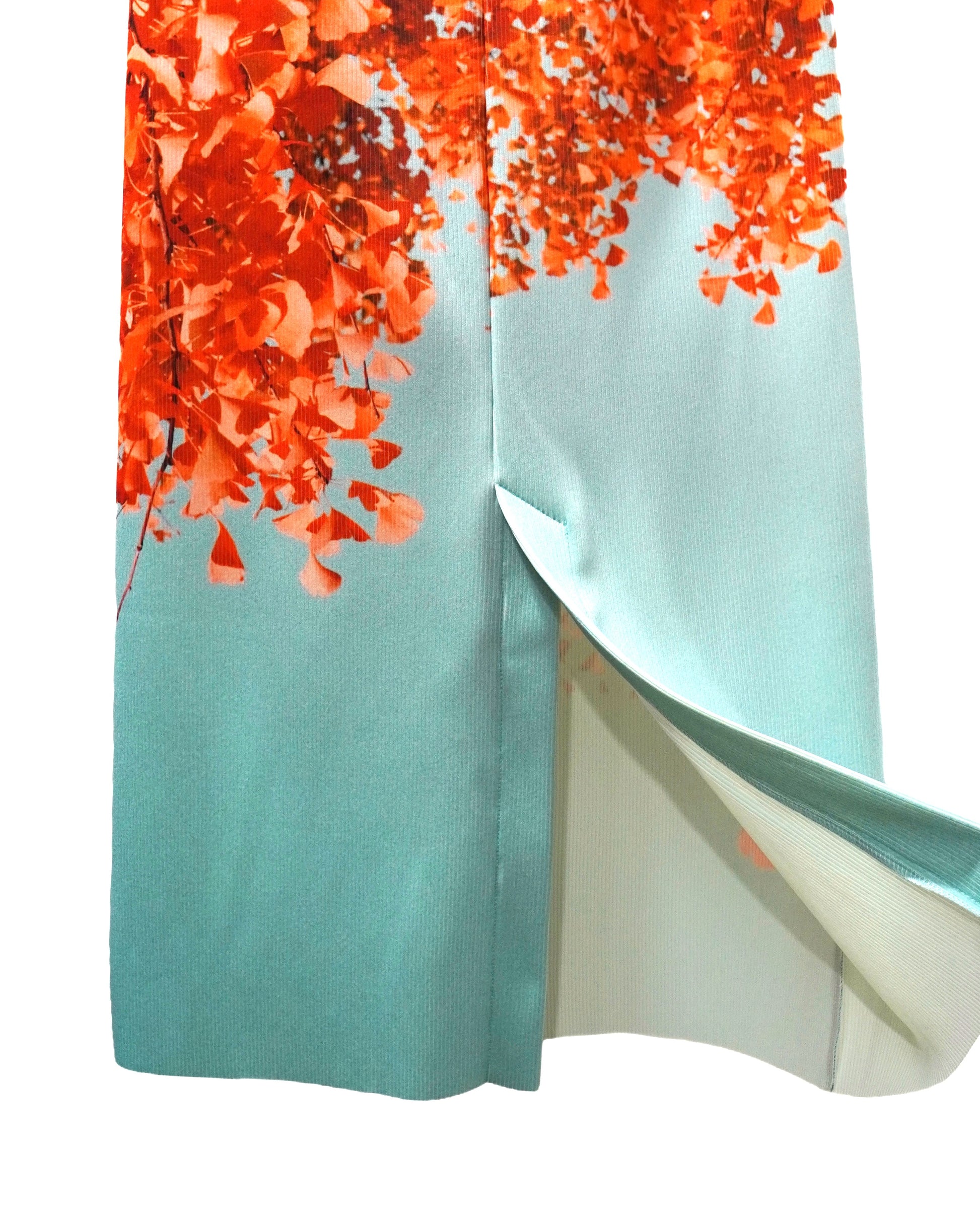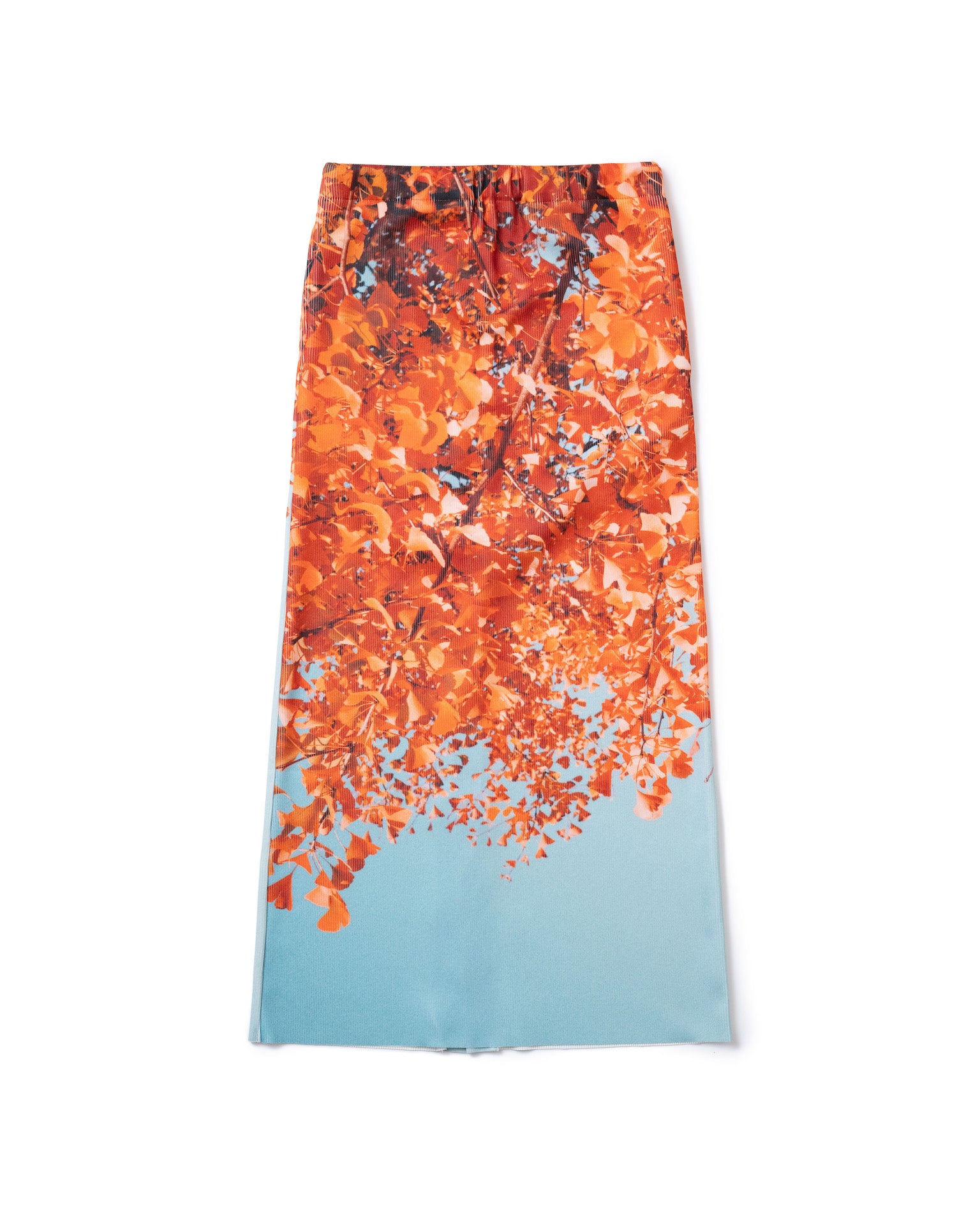 ハリとコシのあるリブを使用したプリントタイトスカート。